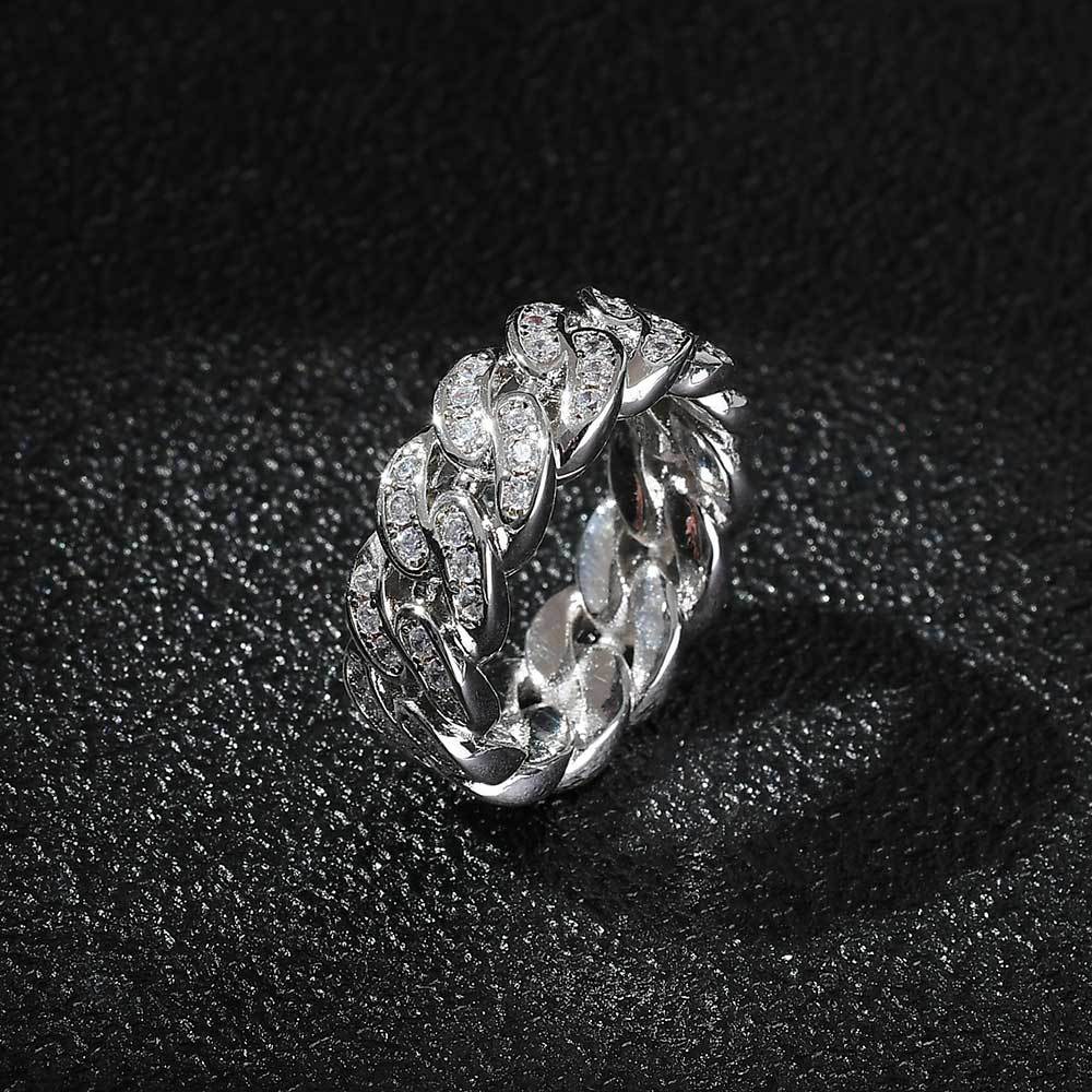 8mm Cuban Link Ring with Cubic Zirconia Stones in Gold or White Gold
