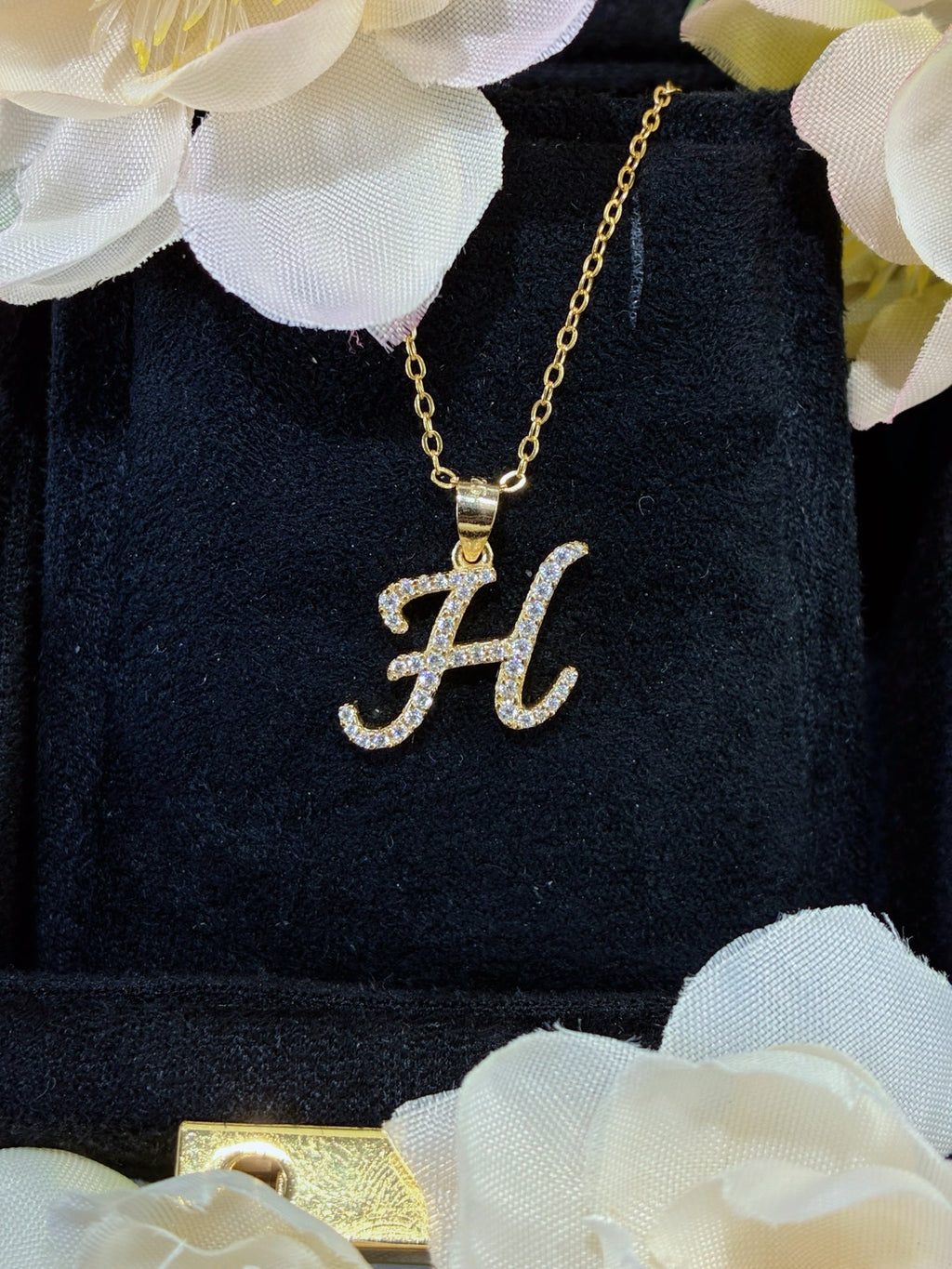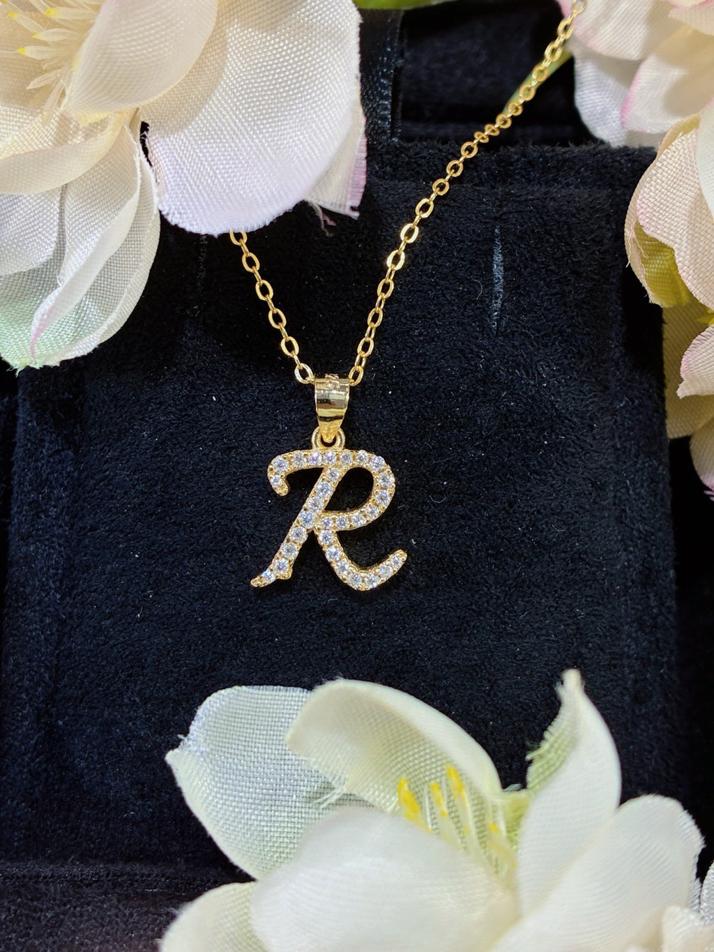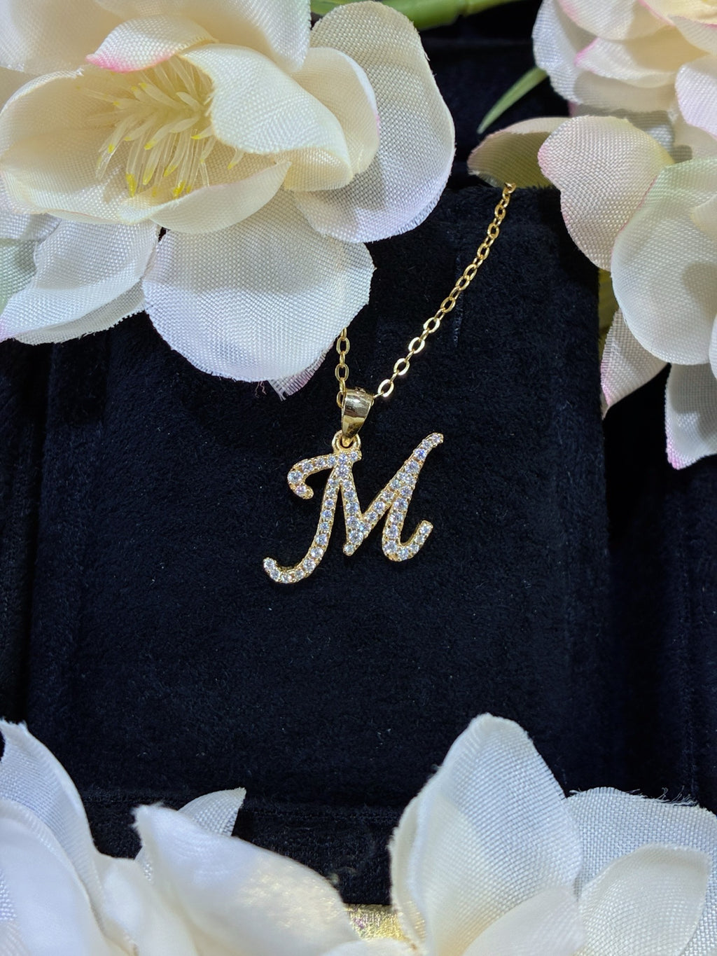 Personalized Alphabet Pendant Necklace — Moissanite Accent on 925 Sterling Silver Chain