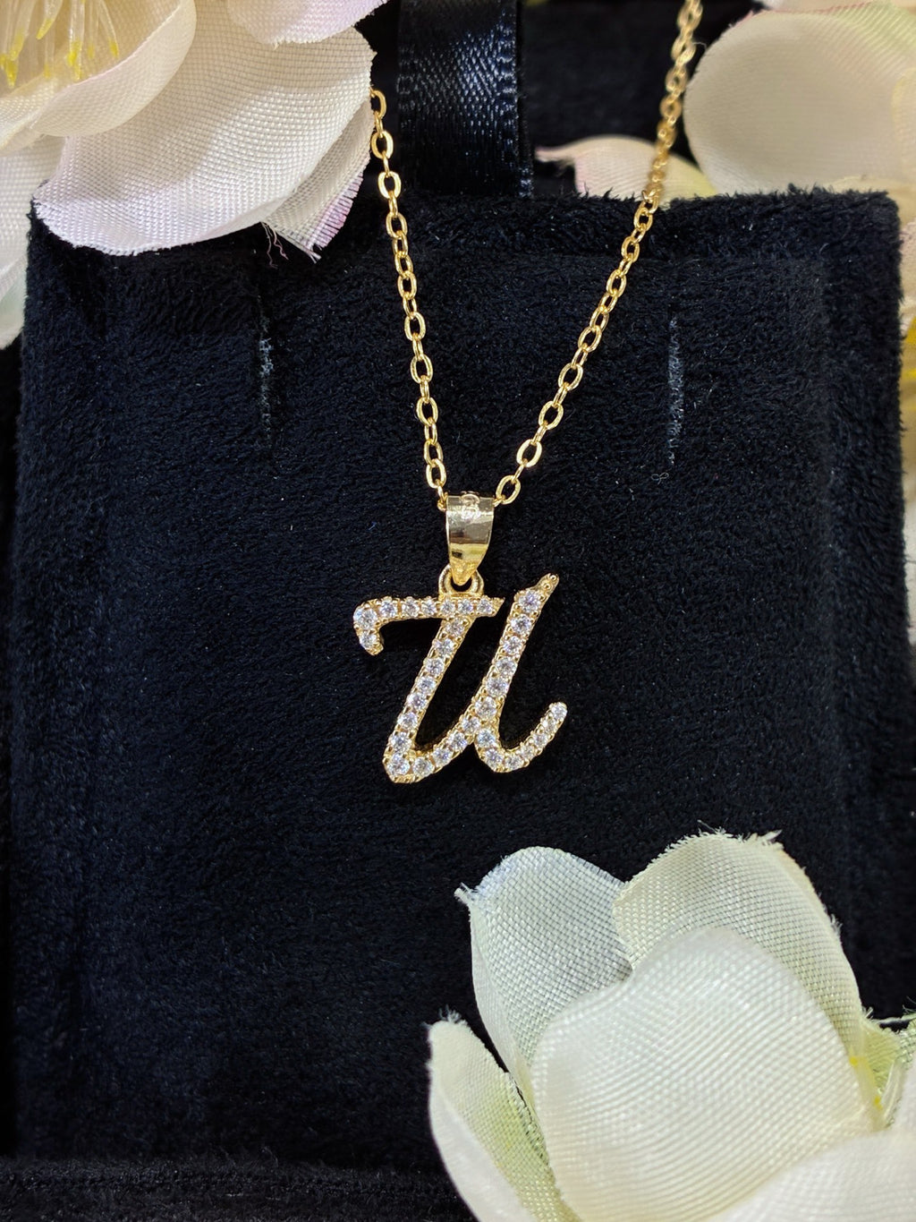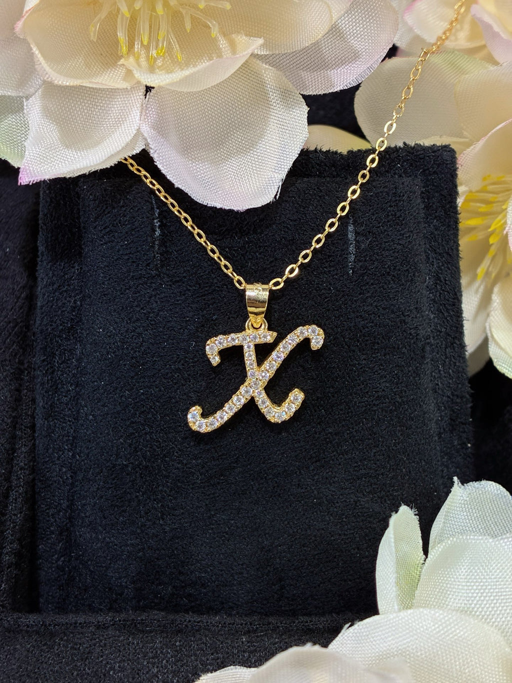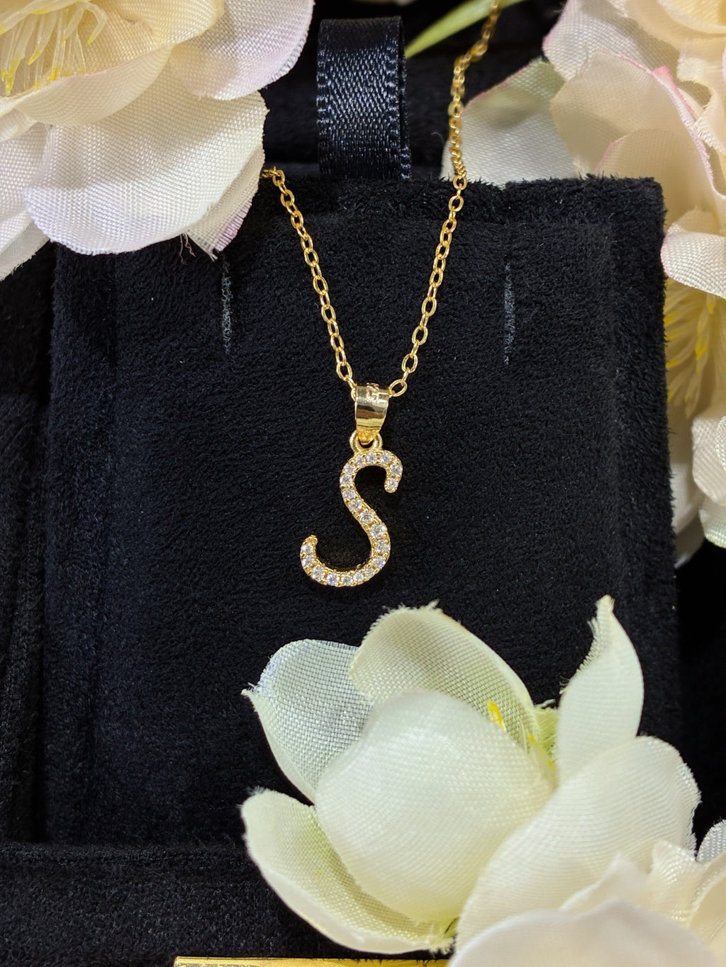 Personalized Alphabet Pendant Necklace — Moissanite Accent on 925 Sterling Silver Chain