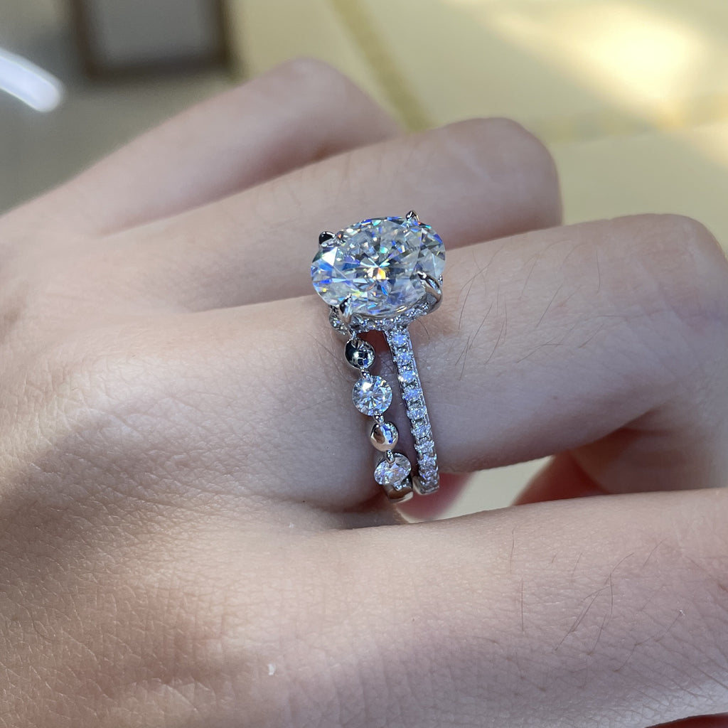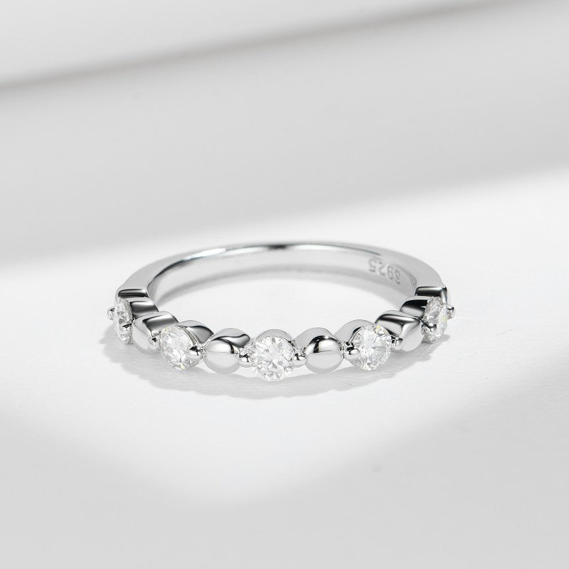 FITINY Bubble Stack Ring – 3.0mm Lab-Created Moissanite in Sterling Silver with White Gold Plating