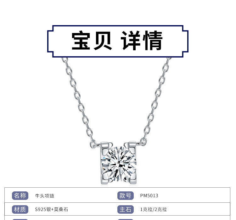 FITINY Bull Pendant Necklace with Lab-Created Moissanite – Sterling Silver, White Gold or Rose Gold Plated