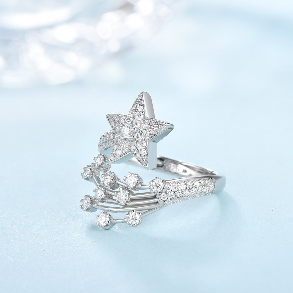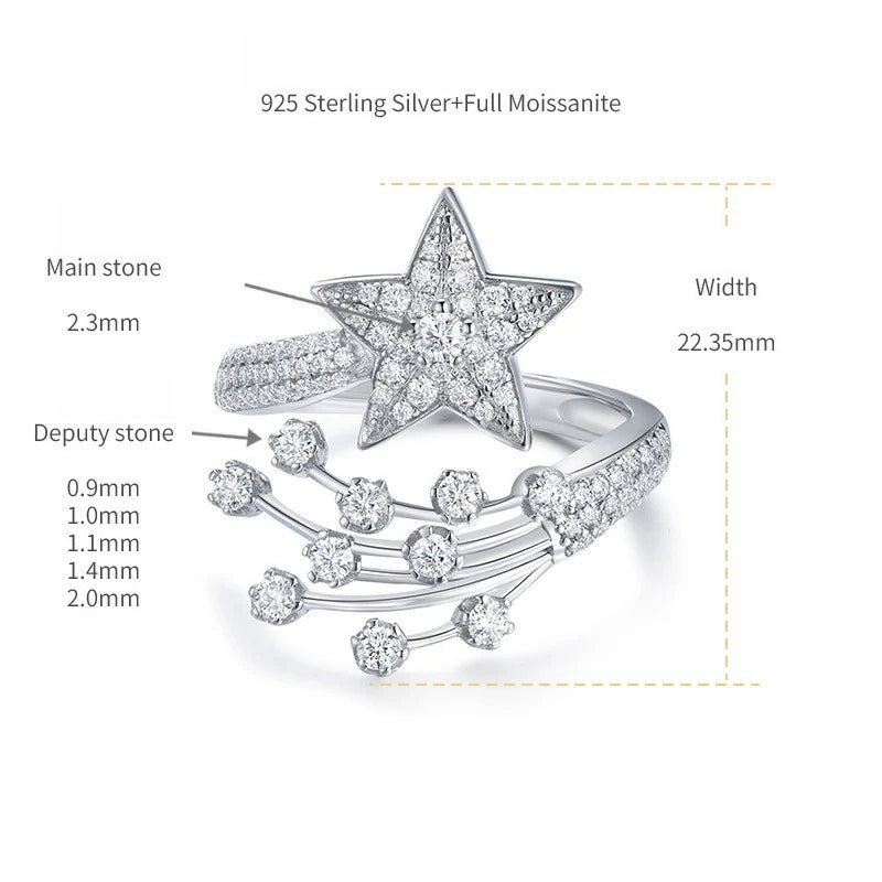 Comet Star Moissanite Ring in Sterling Silver – Adjustable Geometric Statement Ring for Women