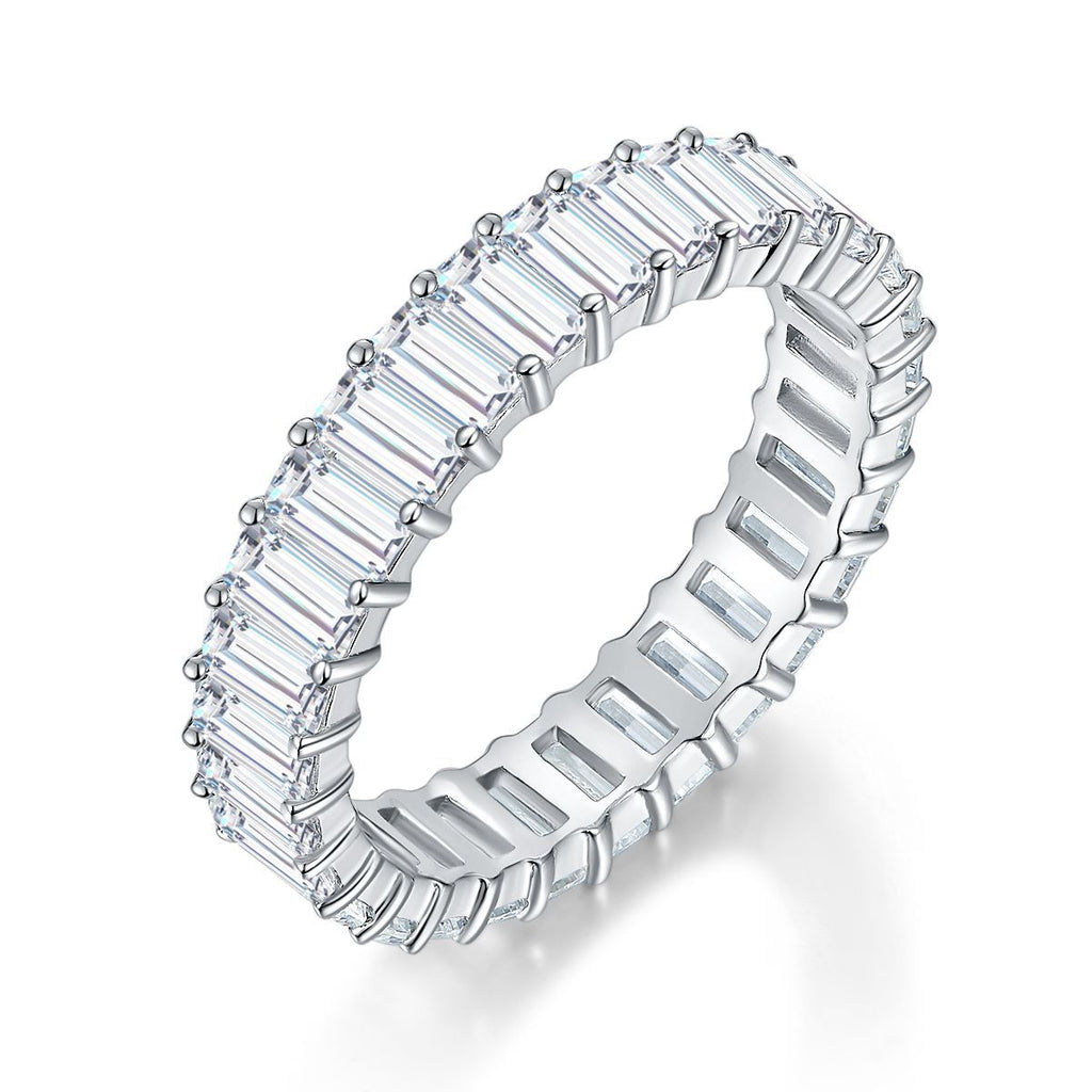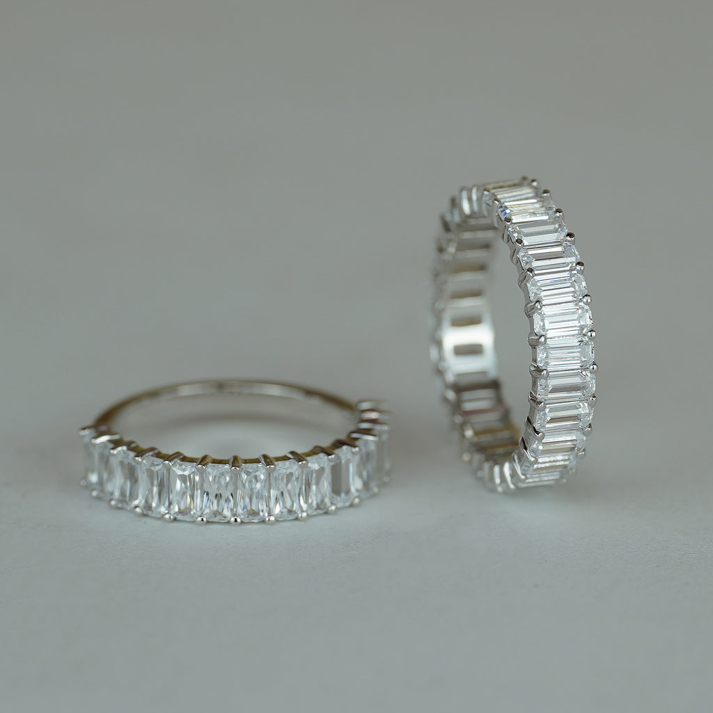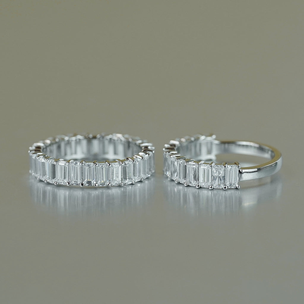 Emerald-Cut Moissanite Stack Ring in Sterling Silver – Full or Half Band Sparkle