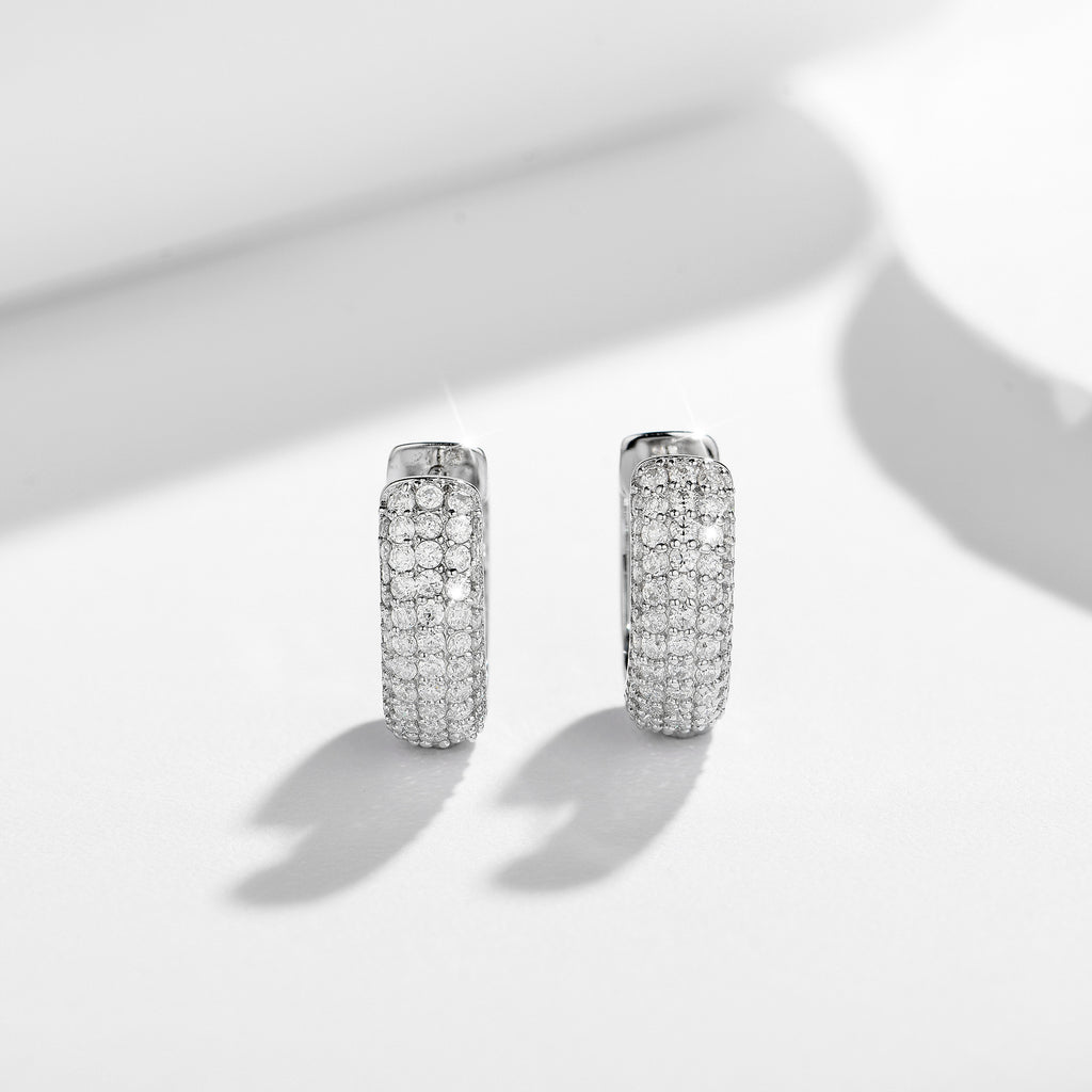 These earrings embody the quiet confidence of modern sophistication. Each pair features two parallel rows of precisely calibrated round moissanite stones, arranged in a balanced circular formation that catches light from every angle. Unlike mass-produced fashion jewelry, every stone is hand-set into solid sterling silver settings — no plating, no fill, no compromise. The result is a piece that feels substantial without weight, elegant without effort, and intentional without pretense. Whether you're building a curated capsule collection or seeking a signature accessory, these studs deliver consistent impact with zero maintenance fuss.
