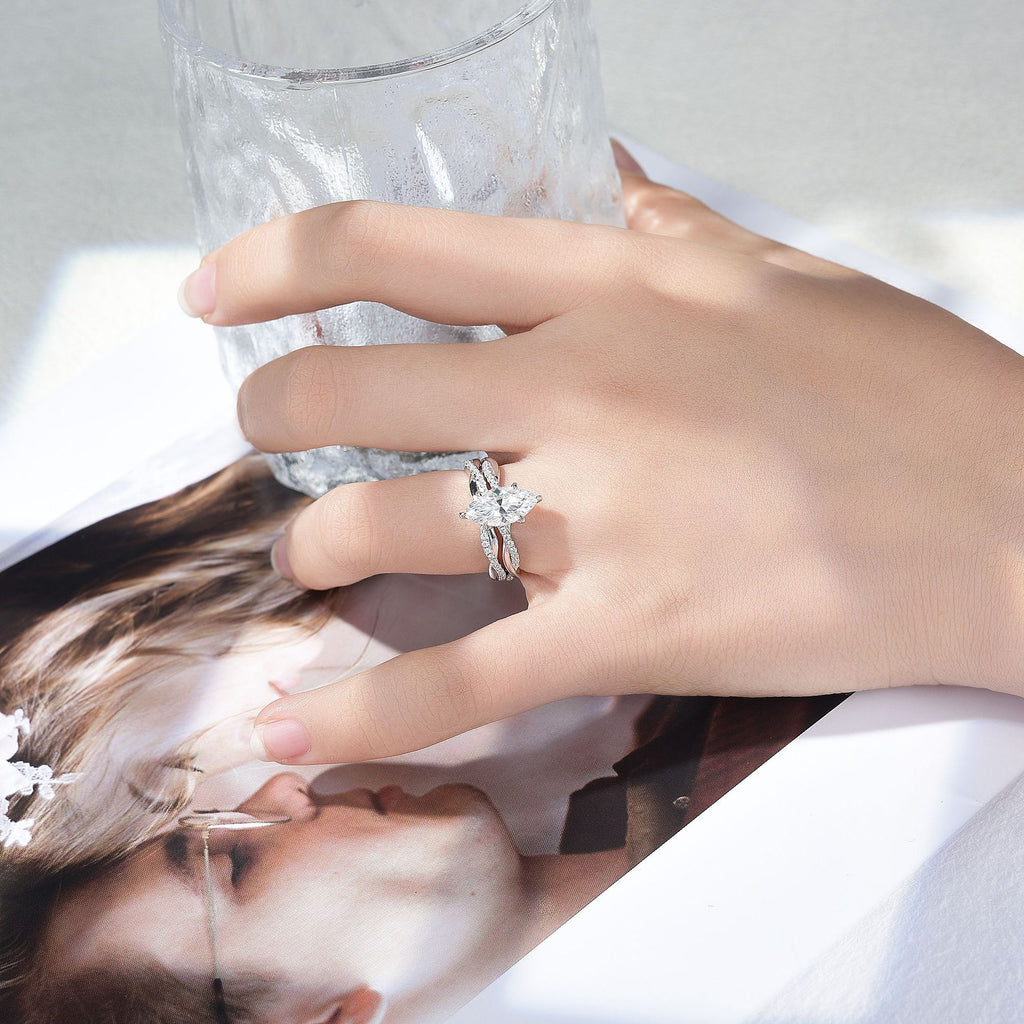 FITINY Marquise Moissanite Engagement Ring Set – 2 Carat Brilliant Cut, 3EX Precision, Sterling Silver