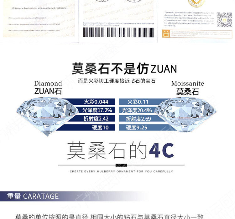 • Stones: Lab-created moissanite (near-colorless, excellent cut)