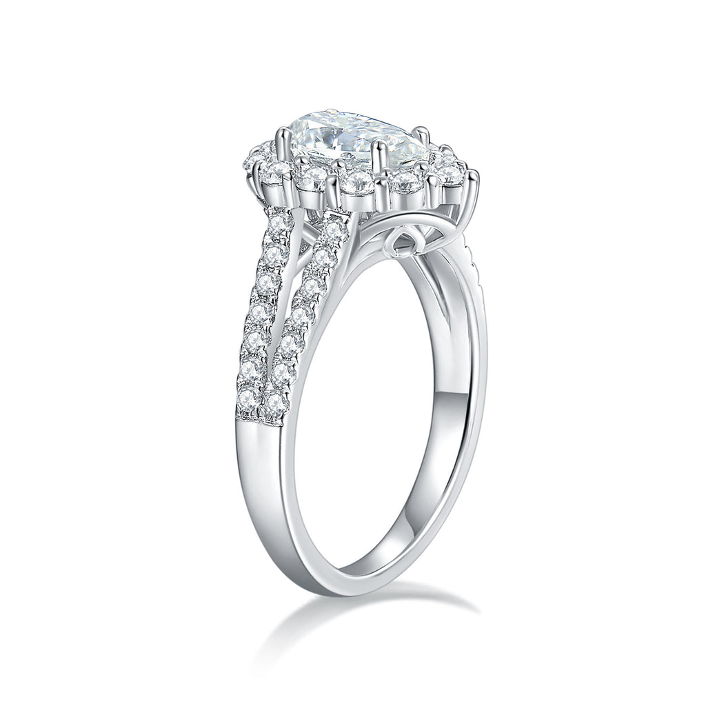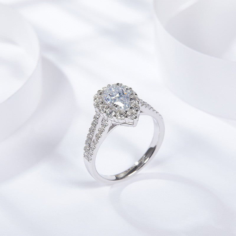 FITINY D-E White Moissanite Drop-Shaped Ring in 18K Gold-Plated Sterling Silver
