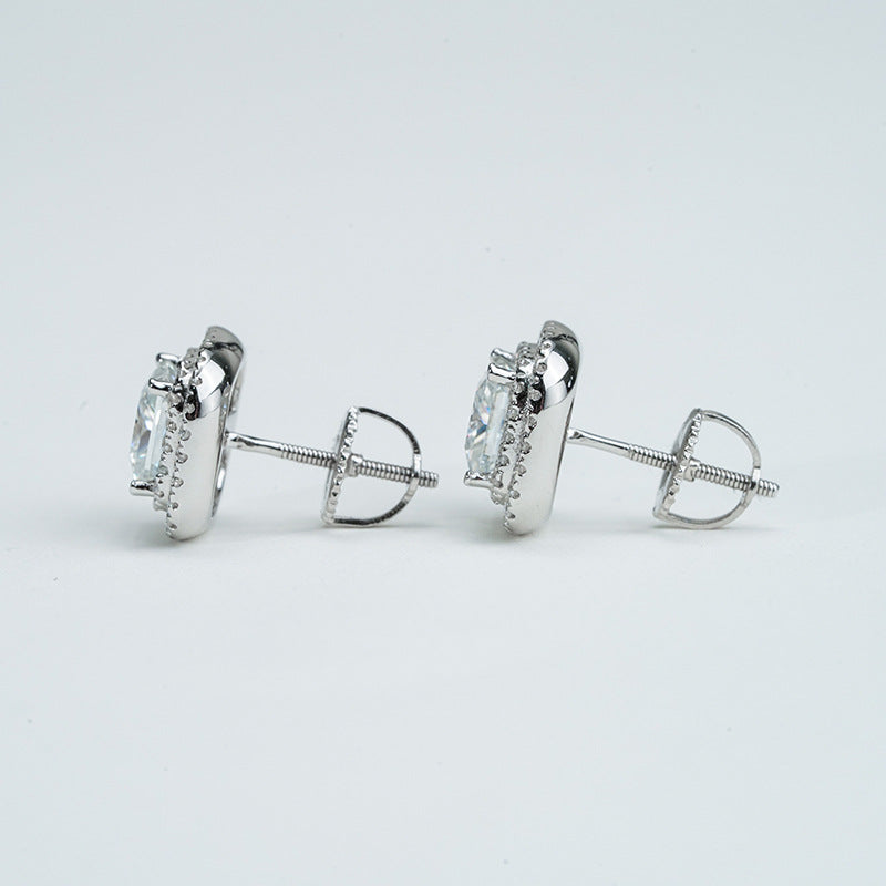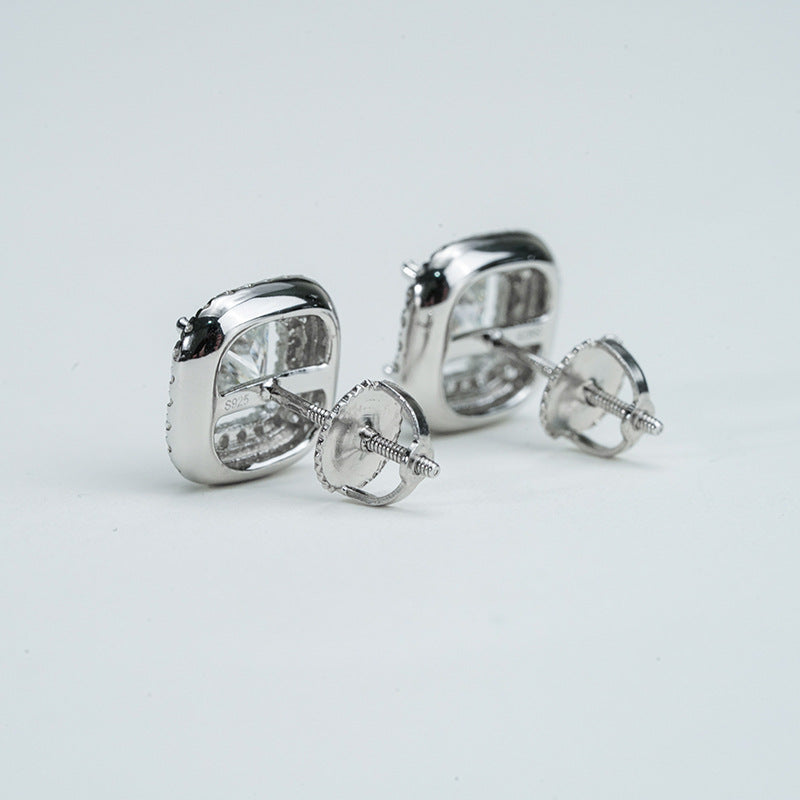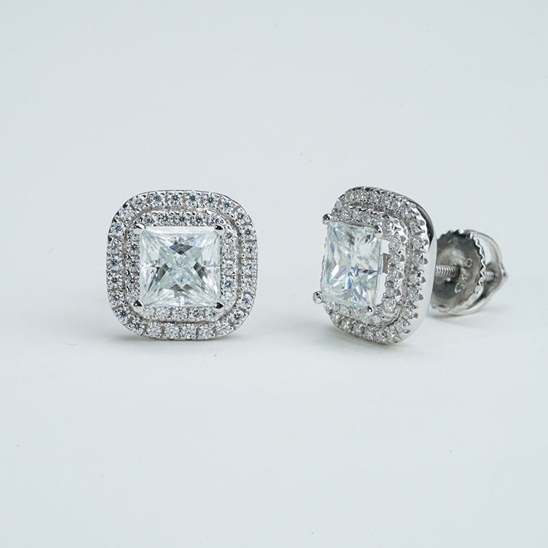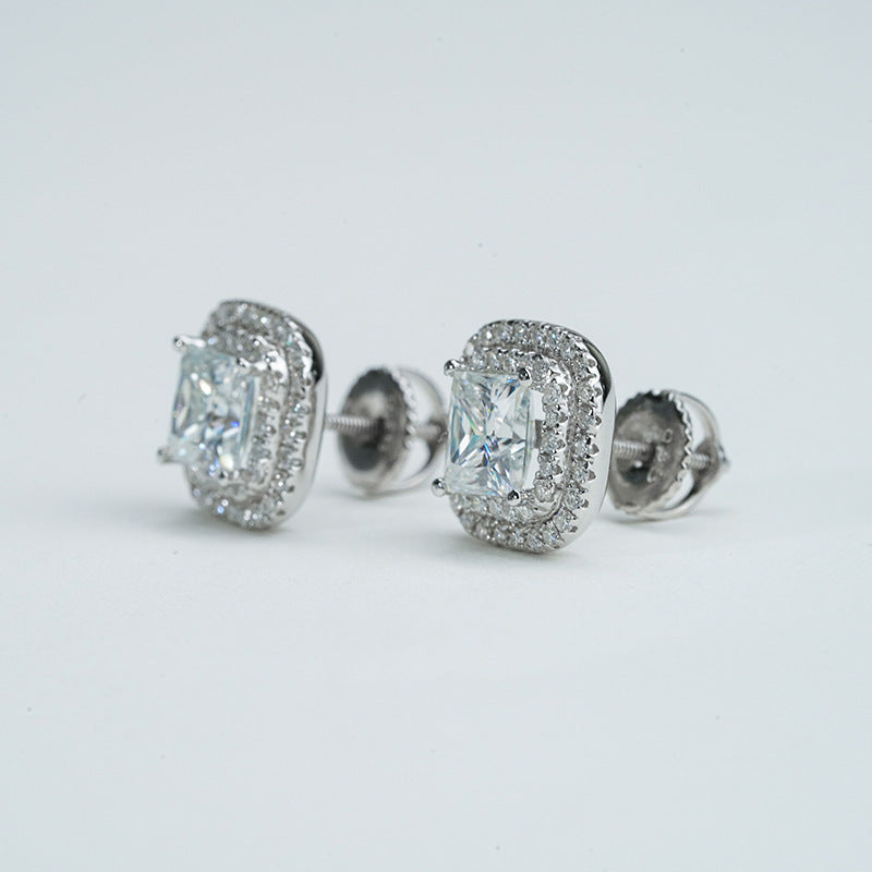 These earrings embody the quiet confidence of understated luxury. The central square-cut moissanite (5.5 × 5.5 mm) commands attention with its precision faceting and vivid sparkle, while 92 tiny accent stones (1.0 mm each) encircle the base—adding dimension without overwhelming the silhouette. The smooth, rounded bezel setting enhances safety and wearability, and the classic butterfly-back closure ensures secure, easy handling. Whether worn solo for a fresh spring look or paired with coordinating necklaces from the FITINY collection, they transition effortlessly from daytime errands to evening gatherings.