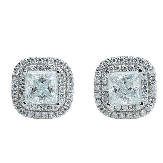 FITINY Geometric Moissanite Stud Earrings in Sterling Silver with 18K White Gold Plating