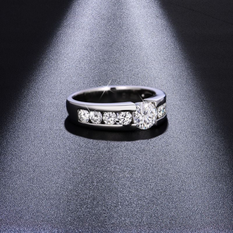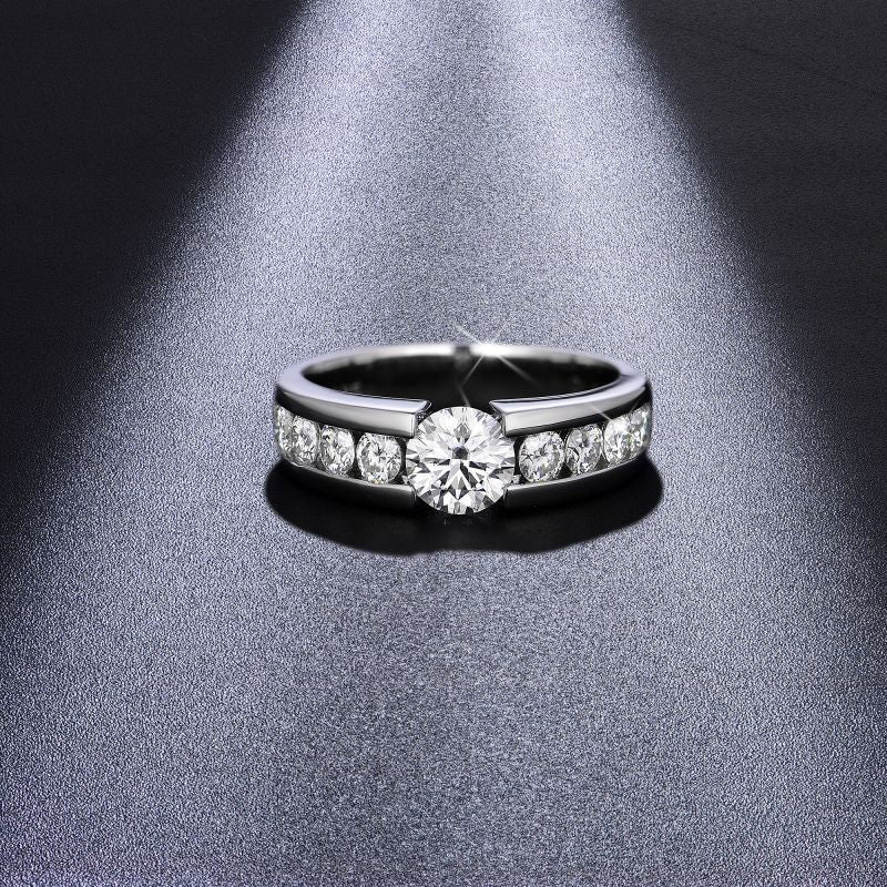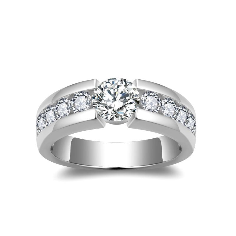 • Center Stone: 1 carat synthetic moissanite (D–E color, round cut, 3EX grade)