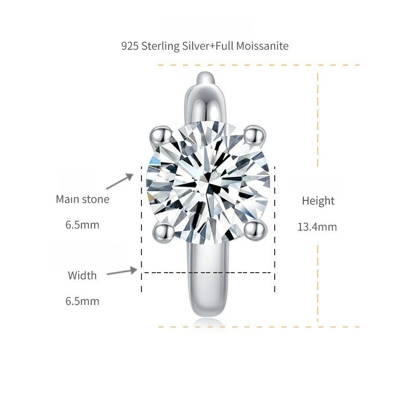 It means each earring features one moissanite stone, and together they total approximately 1 carat per stone — so 1 carat in the left earring + 1 carat in the right earring = 1+1 carat total weight. This creates impressive visual impact while maintaining balance and proportion.