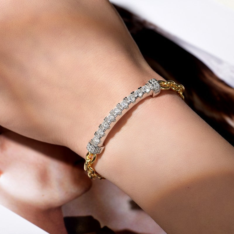 FITINY T-Shape Moissanite Bracelet – 9 Round Brilliant 4.0mm Stones in Rhodium-Plated Sterling Silver
