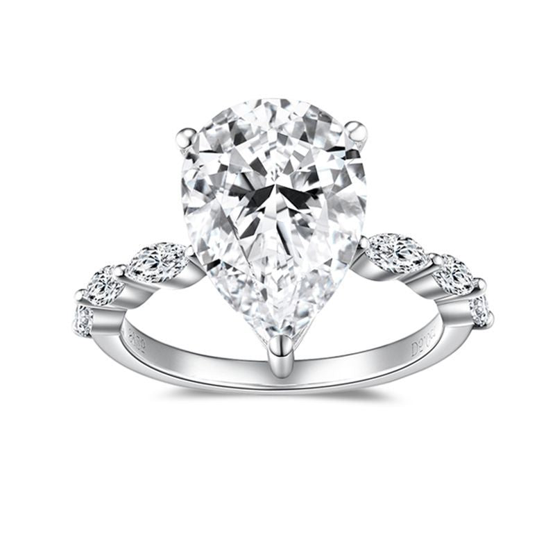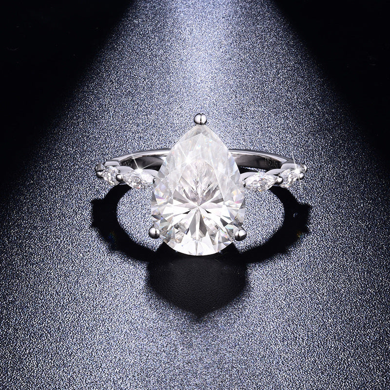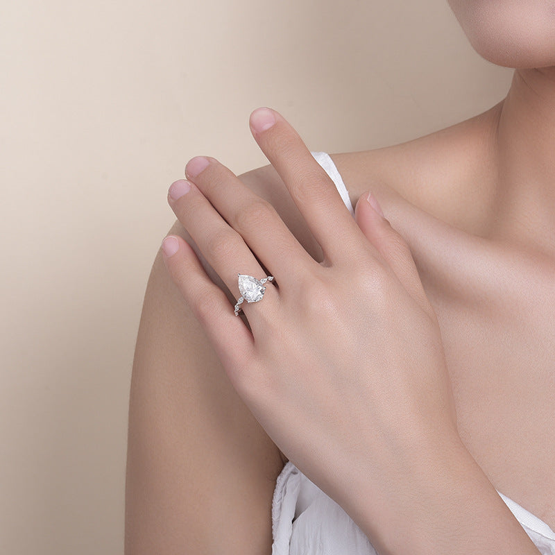 FITINY Moissanite Teardrop Ring — 5-Carat Brilliant Cut in 925 Silver with 18K Gold Plating