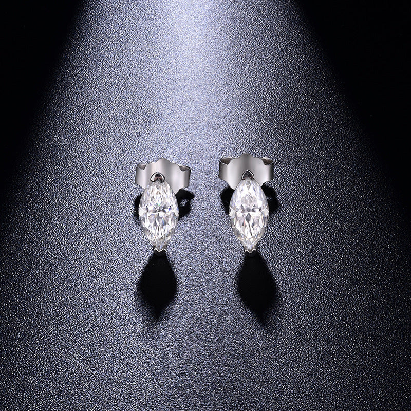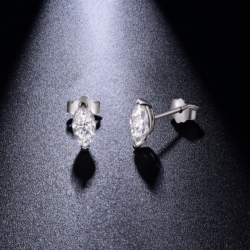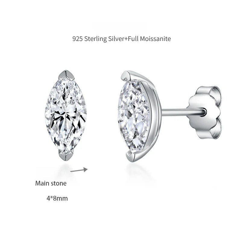 • Dimensions: 4 mm × 8 mm oval moissanite stones (approx. 0.5 in × 0.3 in)