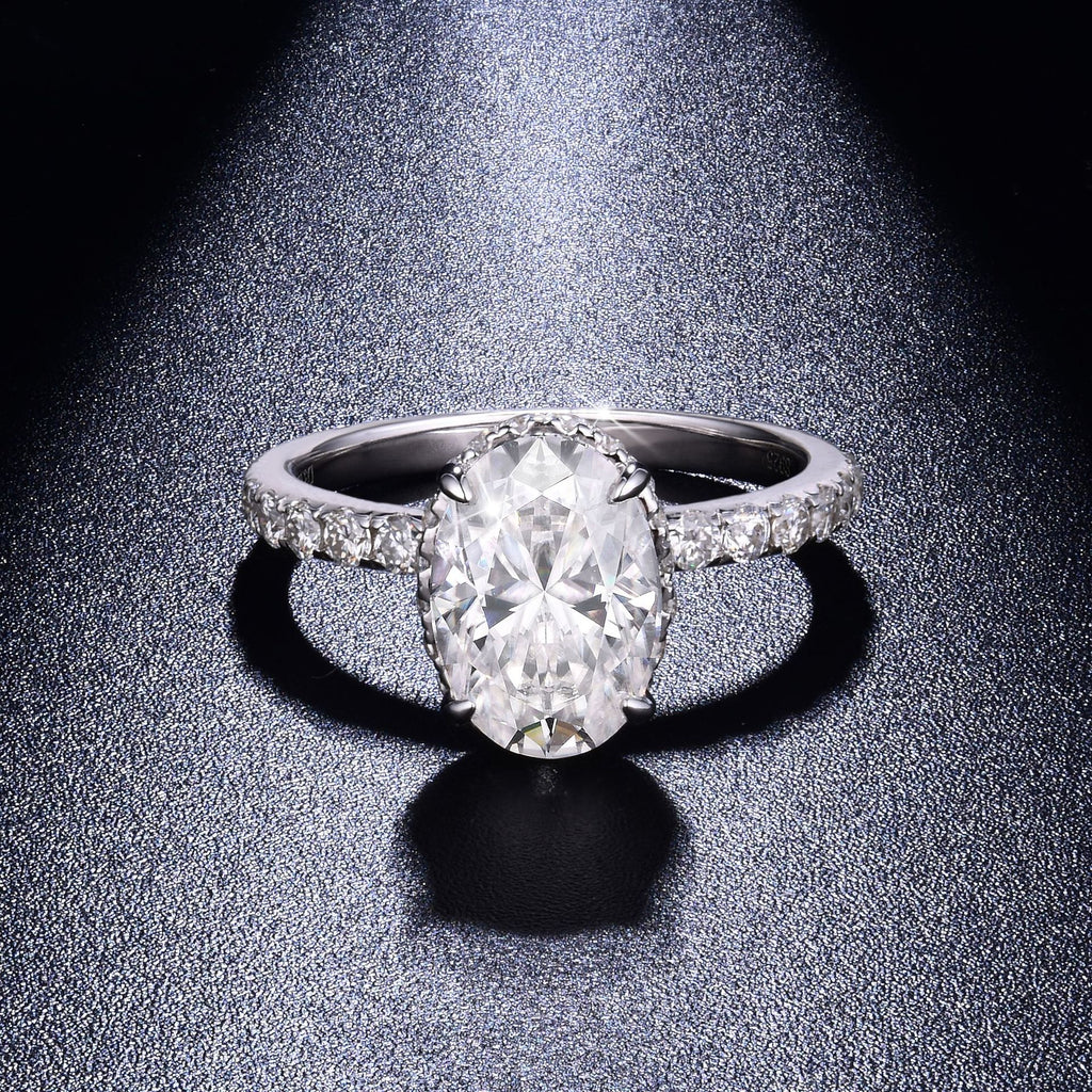 FITINY Oval Moissanite Ring – 2.5 Carat Brilliant Cut in Sterling Silver with 18K Gold Plating
