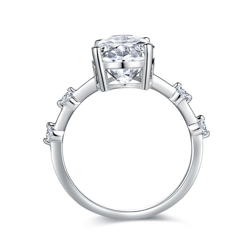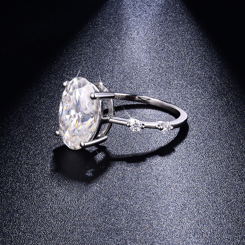 - Dimensions: 8 mm × 12 mm oval moissanite (approx. 4.5 carat total weight)