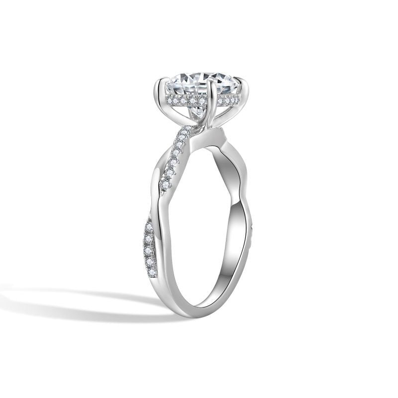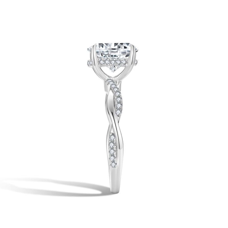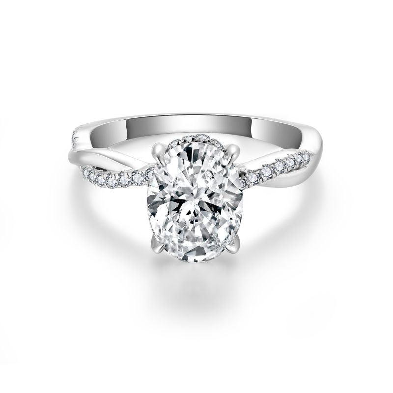 • Brilliant 2-Carat Oval Moissanite: Lab-created carbon silicon carbide stone cut to precise 3EX (Excellent) proportions for exceptional fire, sparkle, and clarity—graded D–E color (near-colorless, icy white).