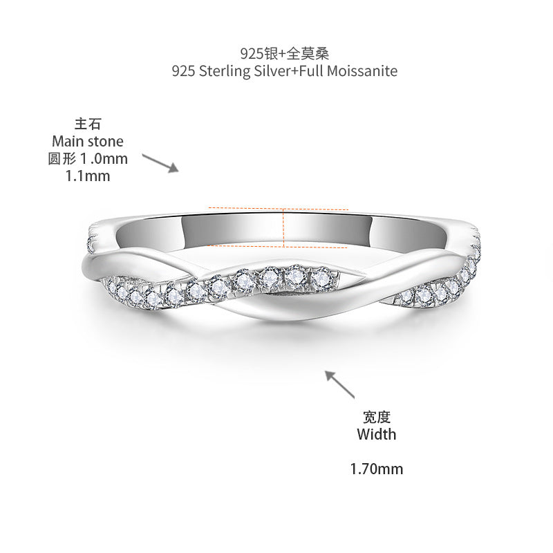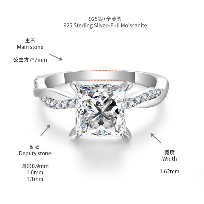 • Material: Synthetic moissanite center stone (carbon silicon carbide), sterling silver setting