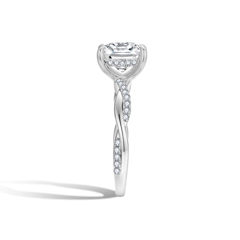 • Brilliant 2-Carat Moissanite Center Stone: Lab-created synthetic carbon silicon carbide (moissanite) with D–E color grade — near-colorless and exceptionally bright.