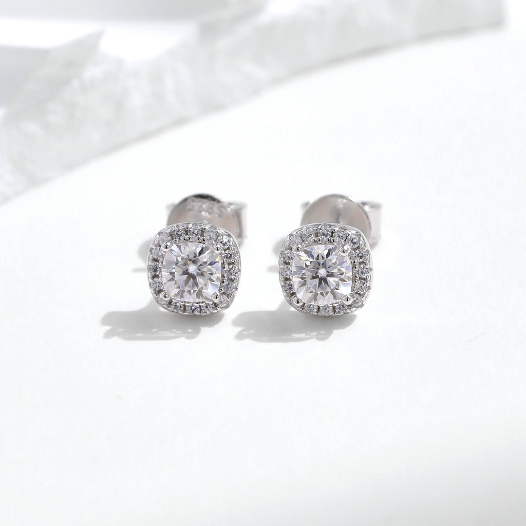 Geometric Moissanite Stud Earrings in Sterling Silver