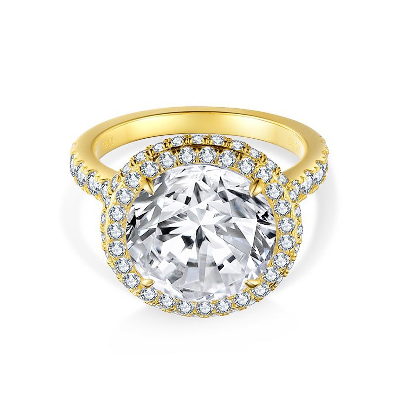 Vintage-Inspired Moissanite Ring in 18K Gold-Plated Sterling Silver – Round Brilliant 5-Carat Statement Band for Women