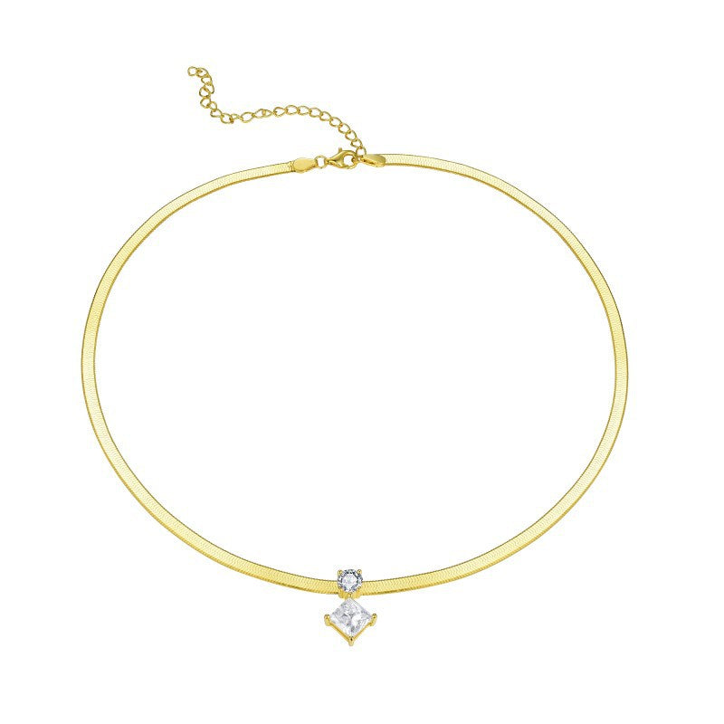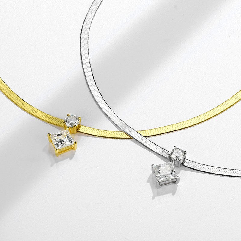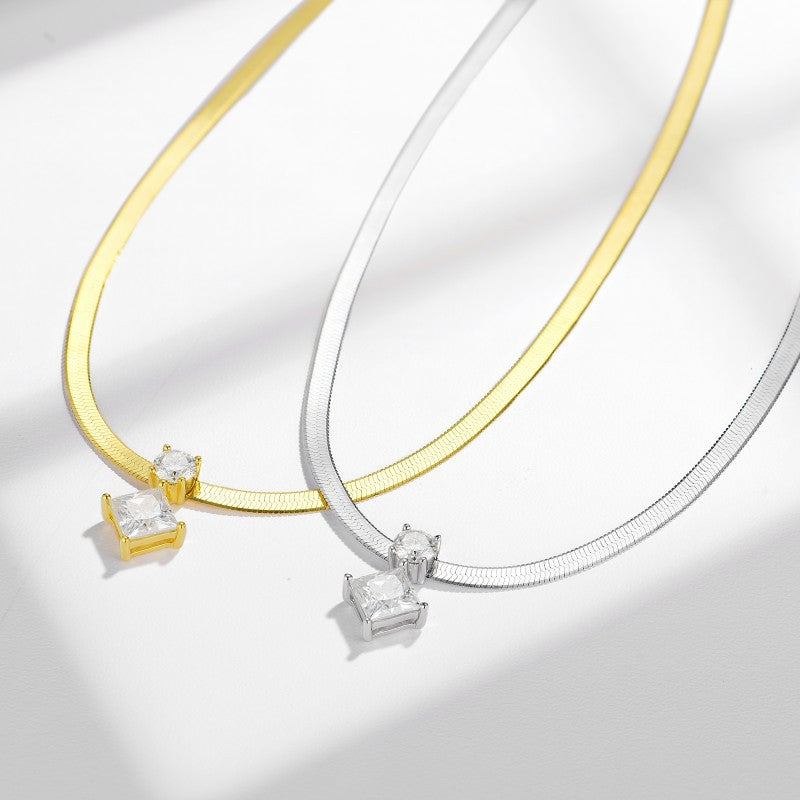 Princess-Cut Moissanite Snake Chain Necklace in Sterling Silver – White Gold or Yellow Gold Plated