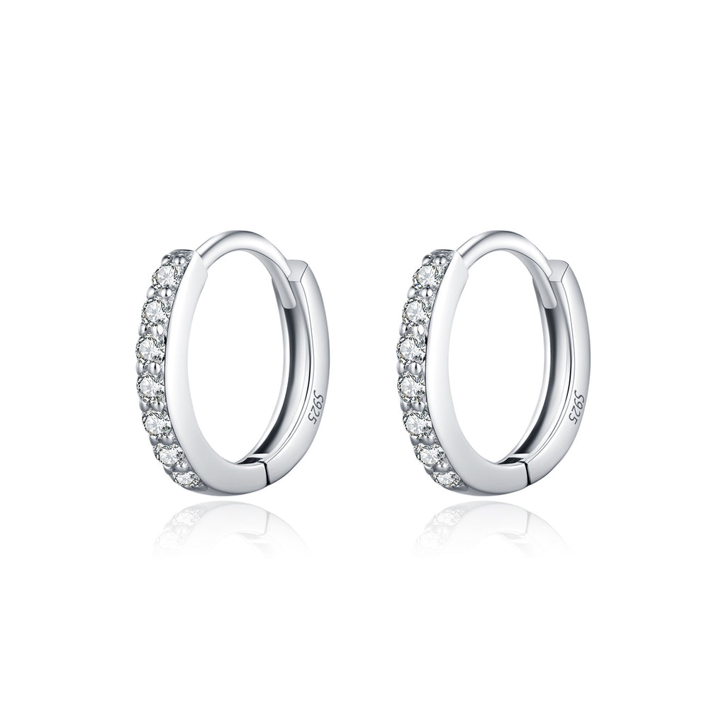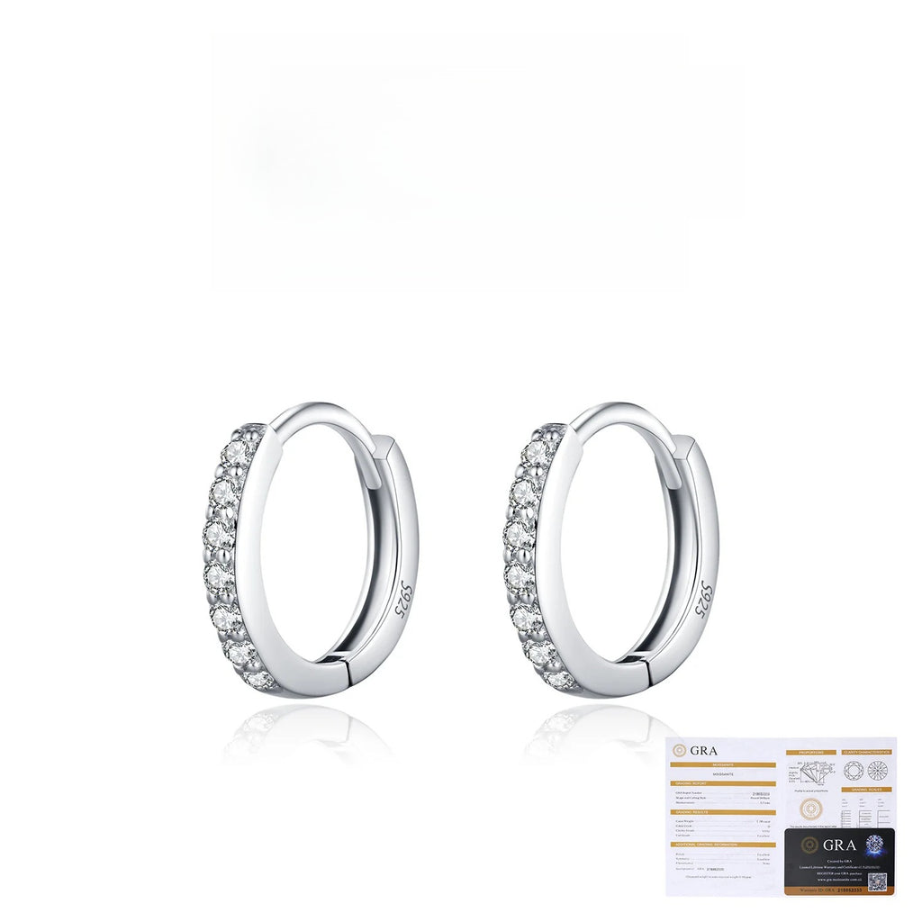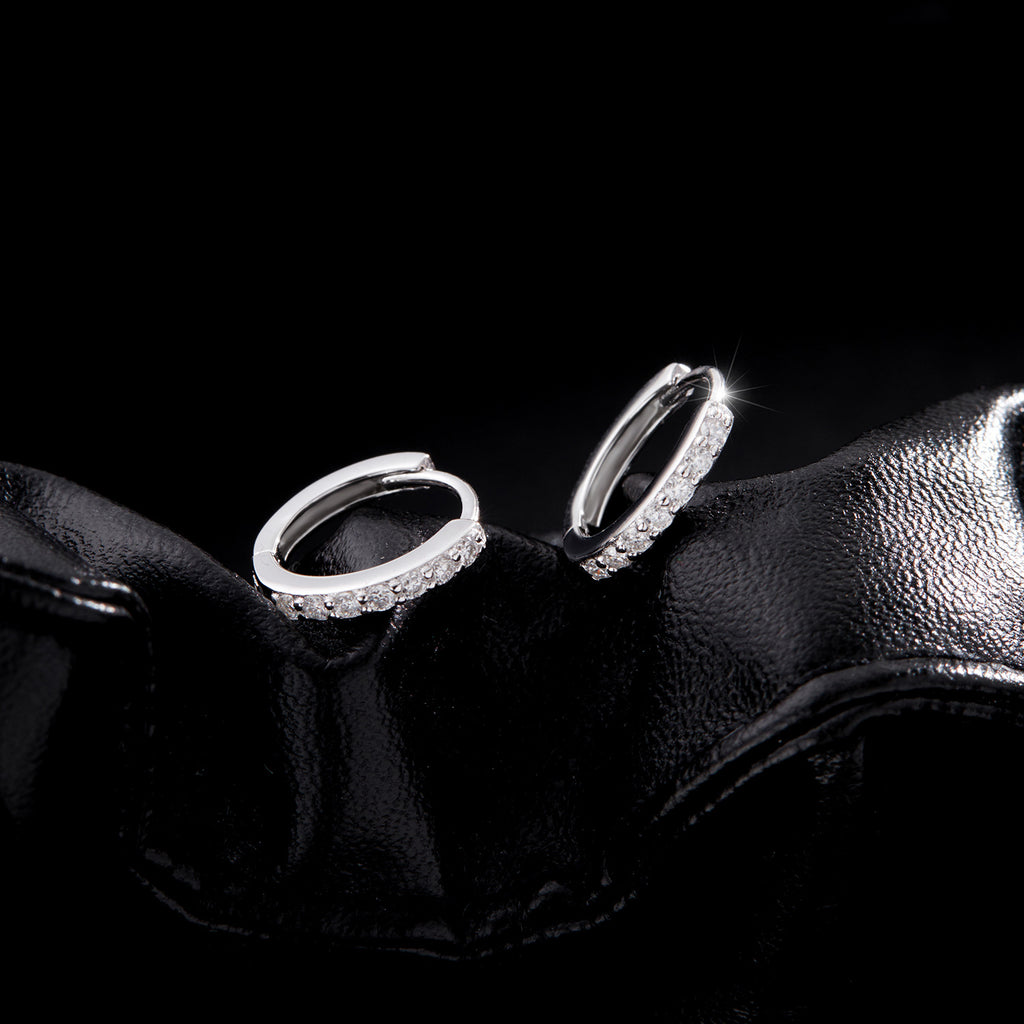 These hoop earrings reinterpret classic circular form through a bold yet wearable geometric lens — think softened angles and balanced proportions that flatter every face shape. The outer band is crafted from solid 925 sterling silver, while the inner edge features a continuous row of precisely set round moissanite stones. Unlike mass-produced alternatives, each stone is individually secured to maximize light reflection and minimize movement. The result is a piece that catches attention subtly — whether worn solo for quiet confidence or stacked for expressive layering. Ideal for office settings, weekend outings, or evening transitions, these earrings bridge the gap between intentional minimalism and modern statement-making.
