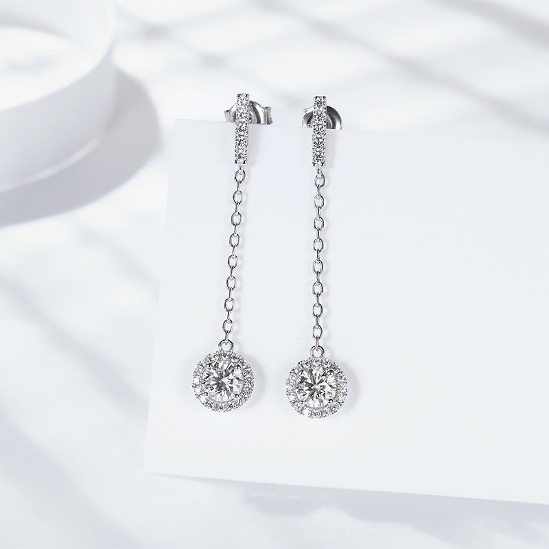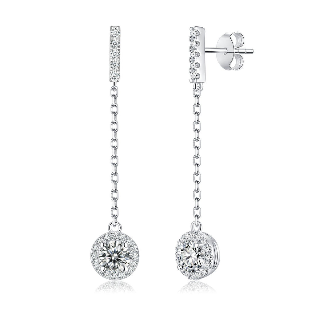 Geometric D-Color VVS1 Moissanite Drop EarEngagement Rings in Sterling Silver — 1 Carat Brilliant Round Cut