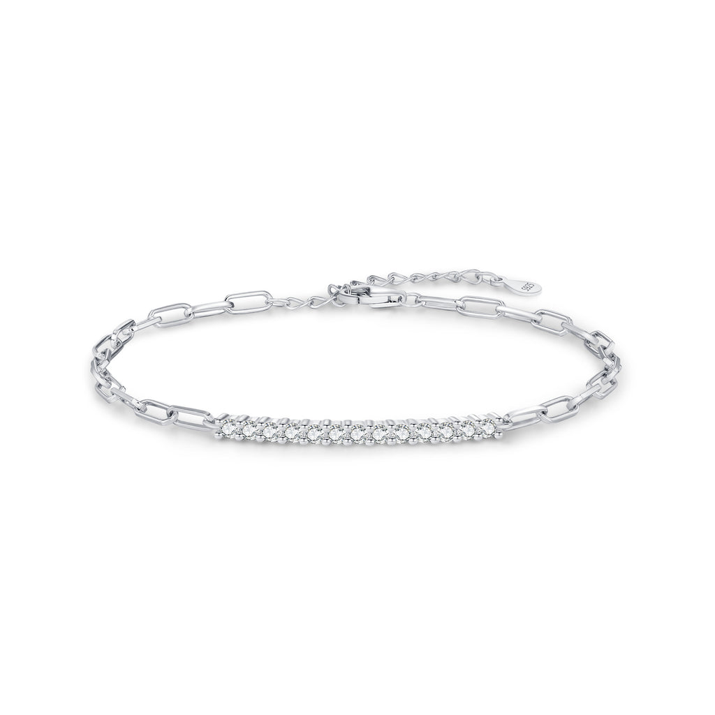 Elevate your wrist with this refined geometric moissanite accent bracelet — a modern fusion of minimalist structure and sparkling detail. Crafted in premium 925 sterling silver, it features precisely set moissanite stones arranged in clean, contemporary lines that catch the light with quiet brilliance. Designed for those who appreciate understated luxury and intentional design, this piece transitions effortlessly from daytime elegance to evening sophistication.