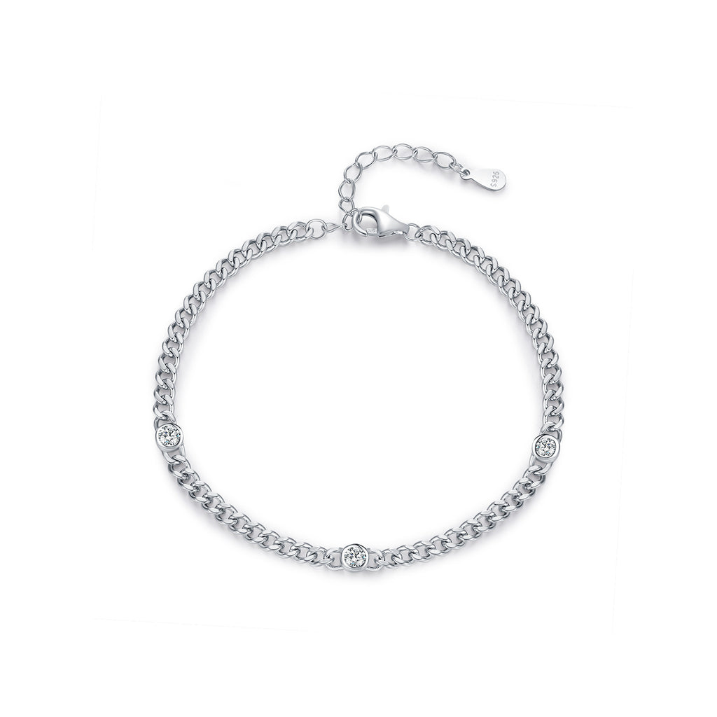 This bracelet captures the spirit of today’s most dynamic streetwear aesthetics — rooted in rebellion, reimagined with elegance. The interlocking geometric links create visual rhythm and texture, while each moissanite stone is hand-set to maximize light reflection. Unlike mass-produced fashion accessories, every element reflects careful attention to proportion and finish. It layers effortlessly with other silver pieces or stands powerfully on its own. Whether worn solo for minimalist impact or stacked for layered intensity, it adapts to your mood, your moment, and your identity.