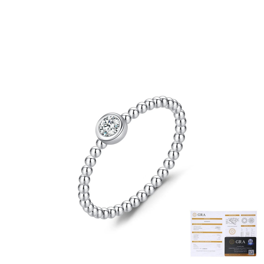 Round Moissanite Accent Ring in Sterling Silver – Minimalist Geometric Design