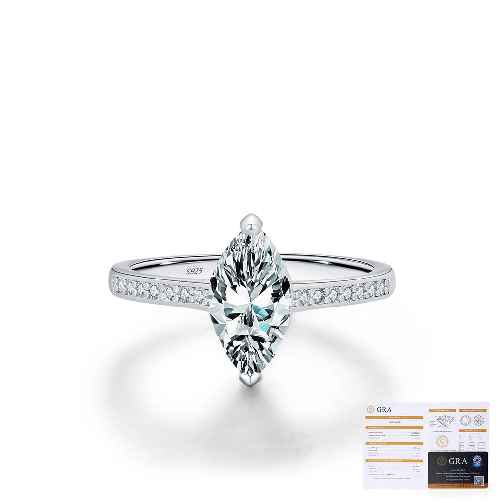 Marquise-Cut D-Color VVS1 Moissanite Engagement Ring in Sterling Silver – Elegant Luxury Band for Women