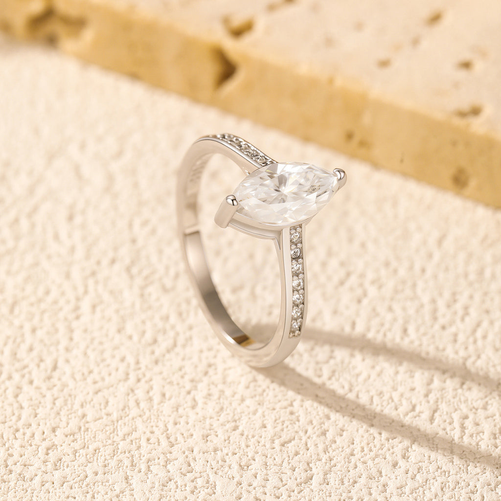 Elevate your everyday style with this sophisticated marquise-cut moissanite ring, crafted in premium 925 sterling silver. Designed for the modern woman who values timeless elegance with contemporary edge, this ring delivers exceptional brilliance without the premium price tag of natural diamonds. Its slender, elongated marquise silhouette creates a flattering, elongating effect on the finger — perfect for stacking or wearing solo as a statement piece.