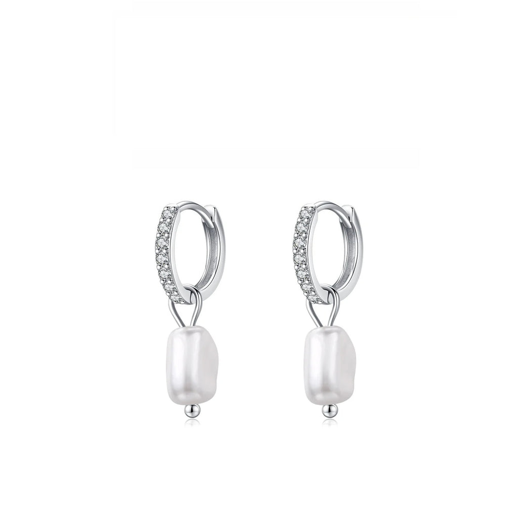 Baroque Pearl Hoop Earrings in Sterling Silver with Sparkling Accents