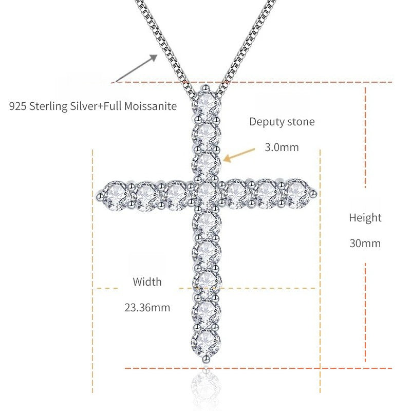 Collar de cruz de hip hop FITINY en plata de ley con detalles de moissanita brillante
