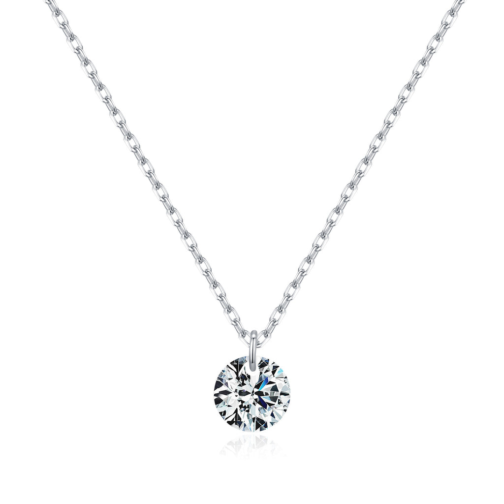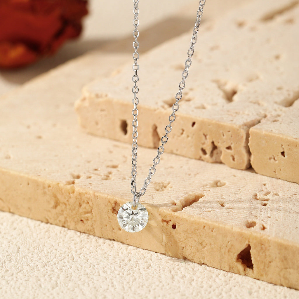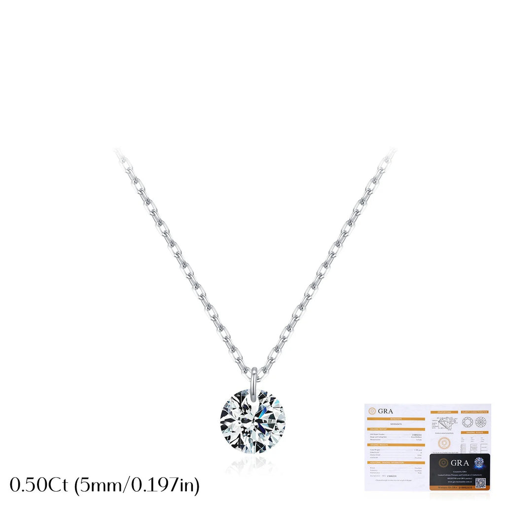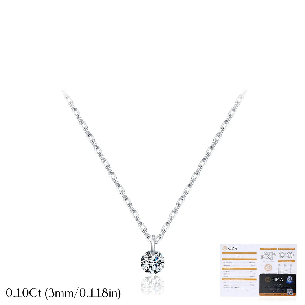 Round D-Color VVS1 Moissanite Solitaire Pendant Necklace in Sterling Silver – Minimalist Clavicle Chain