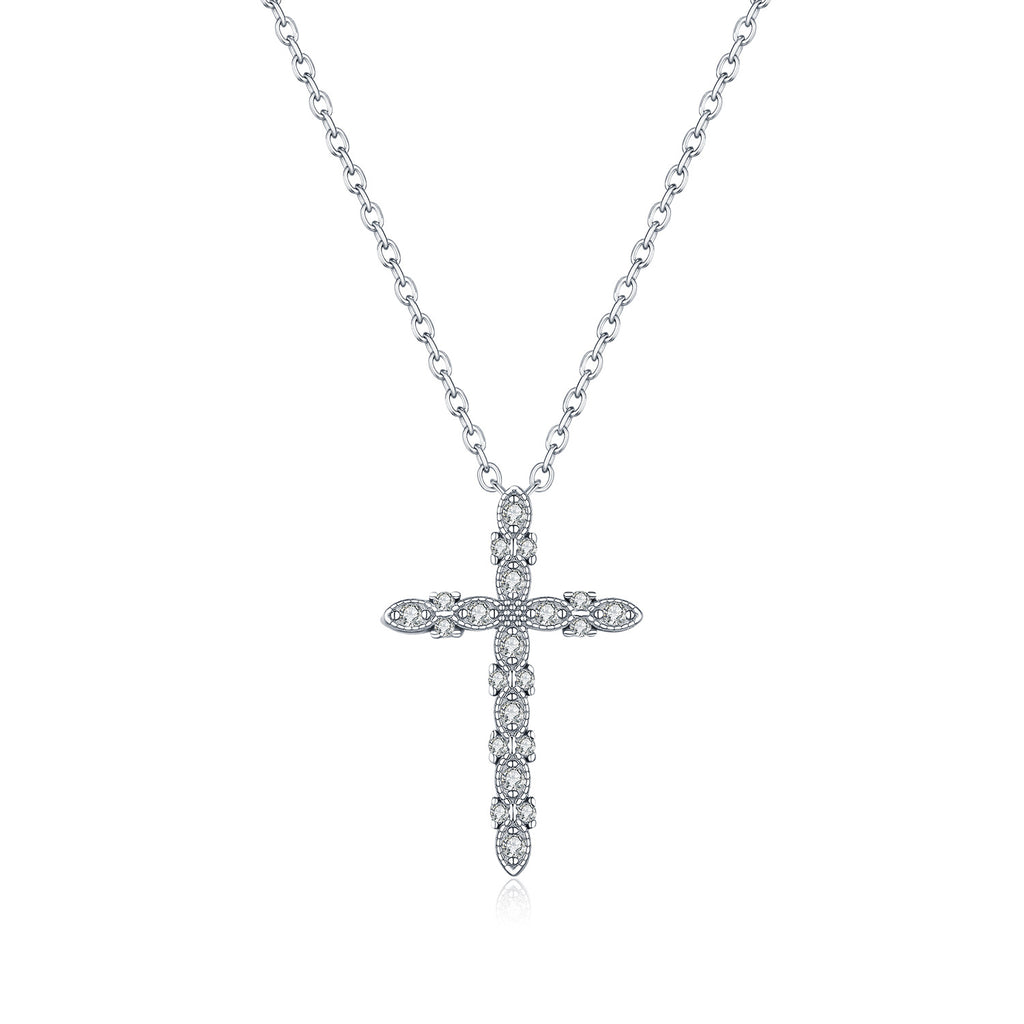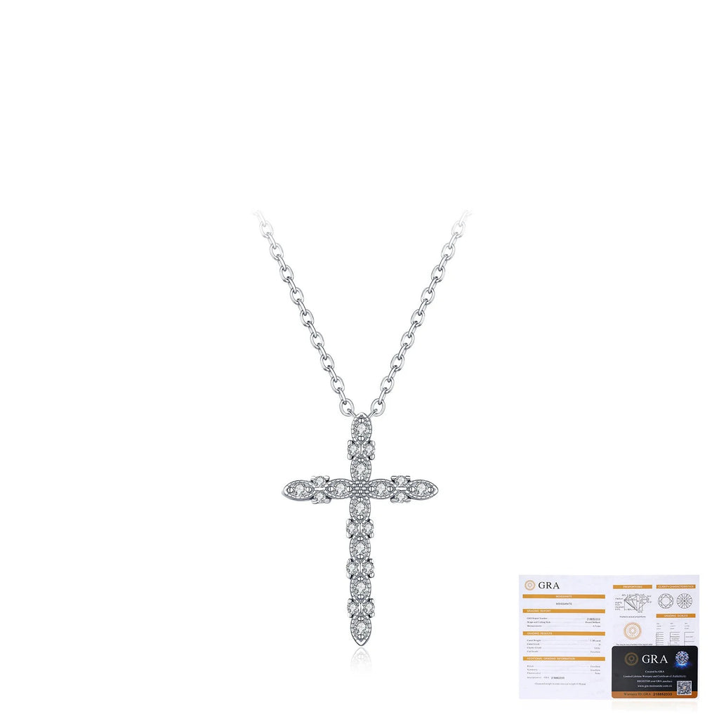 Sterling Silver Cross Pendant Necklace with Sparkling D-Color VVS1 Moissanite Stones – Delicate Clavicle Chain