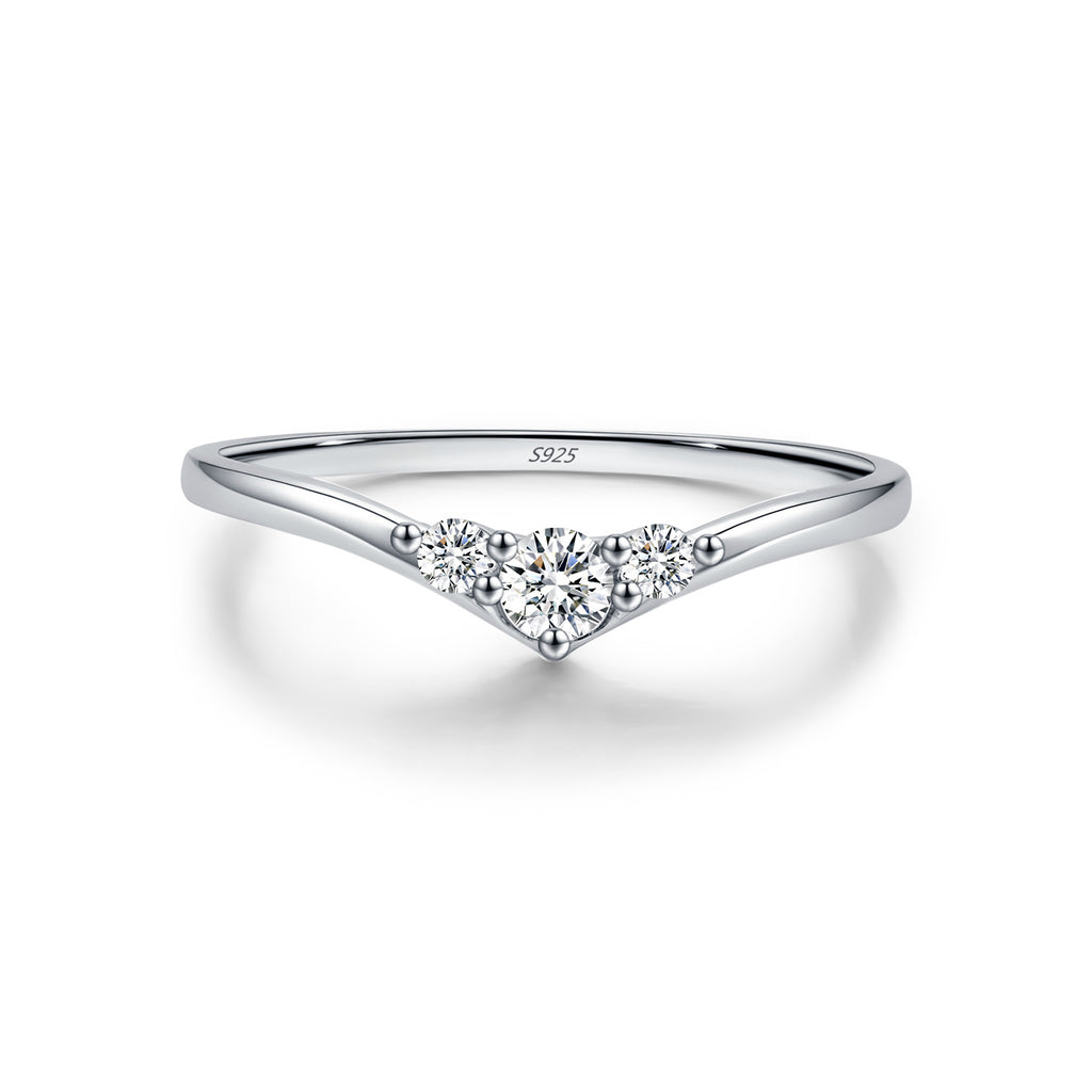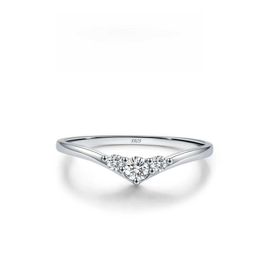 Geometric Arrow Stackable Ring in Sterling Silver with Moissanite Accents