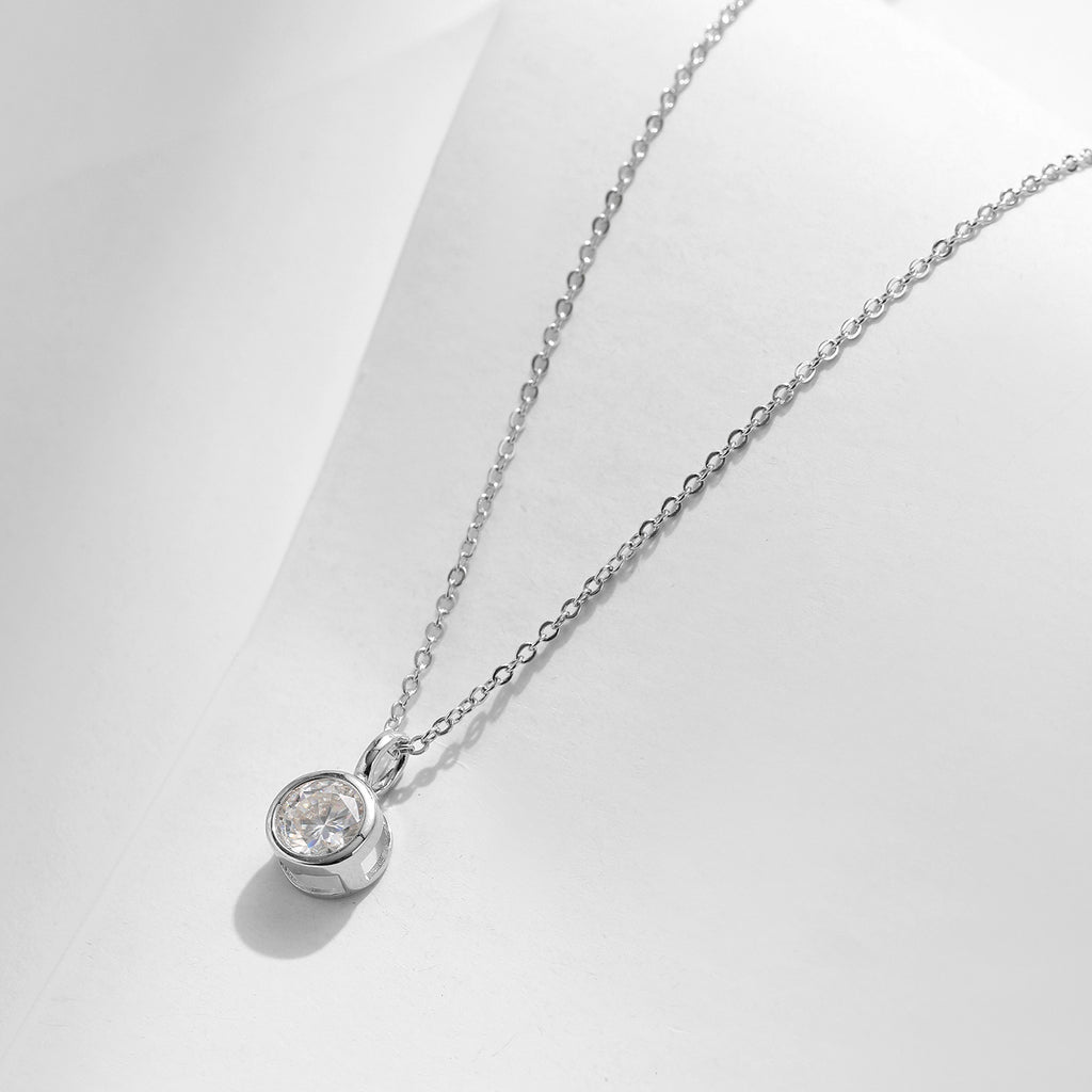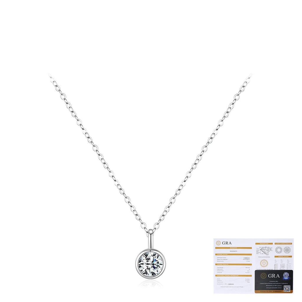Round Moissanite Pendant Necklace in Sterling Silver – Minimalist Clavicle Chain for Women