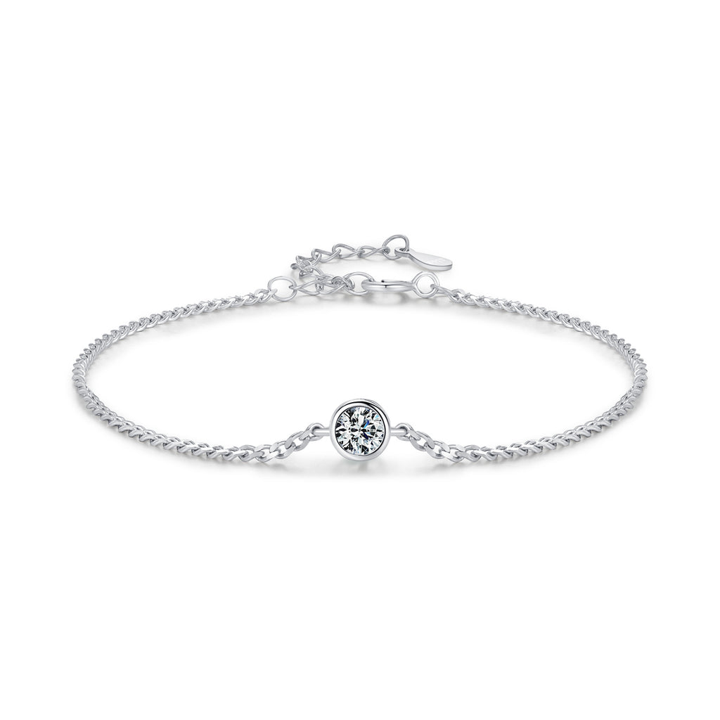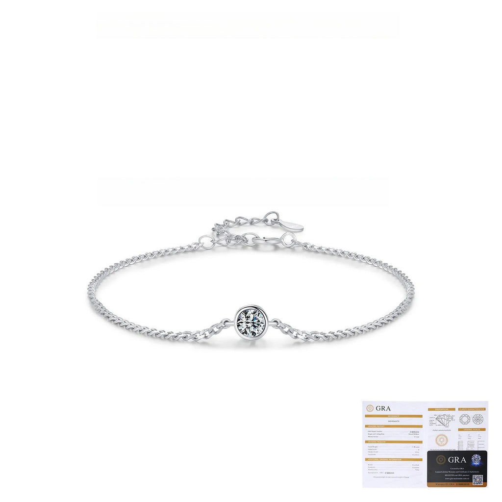Minimalist Sterling Silver Moissanite Solitaire Bracelet with Delicate Chain