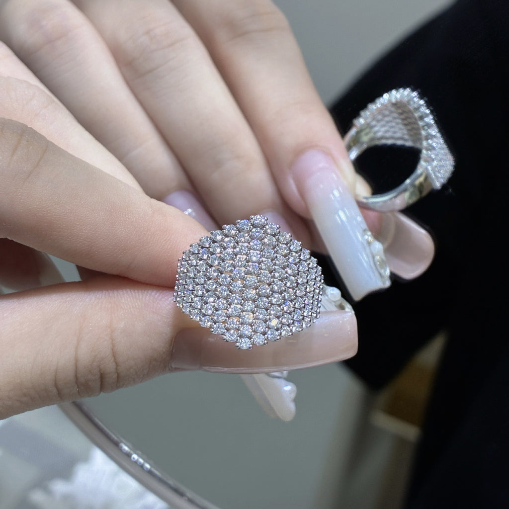 Anillo FITINY de moissanita pavé completo en plata de ley con baño de oro de 18 quilates: estilo hip hop geométrico y audaz.
