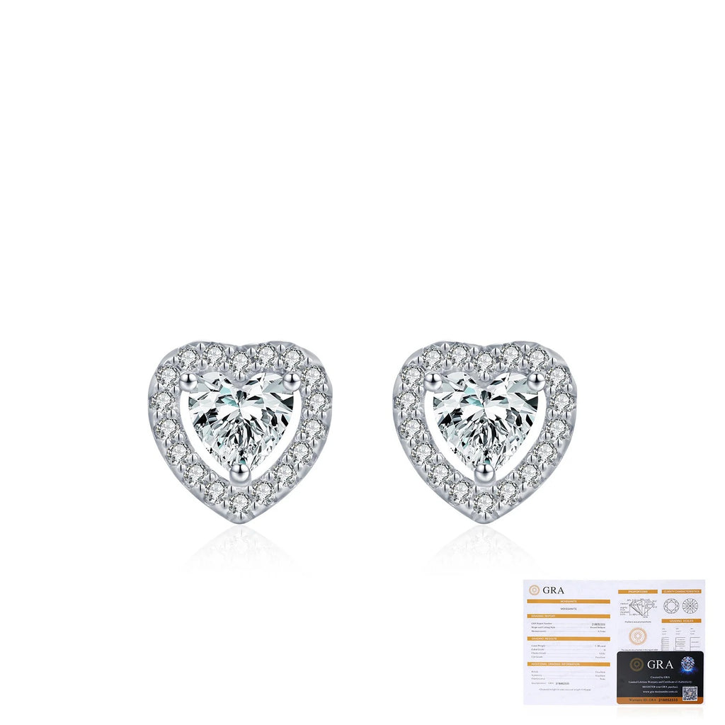 Sterling Silver Heart Stud EarEngagement Rings with D-Color VVS1 Moissanite Accents – Minimalist Romantic Jewelry