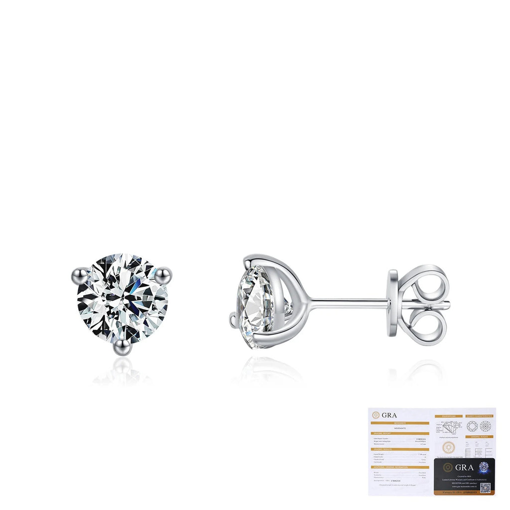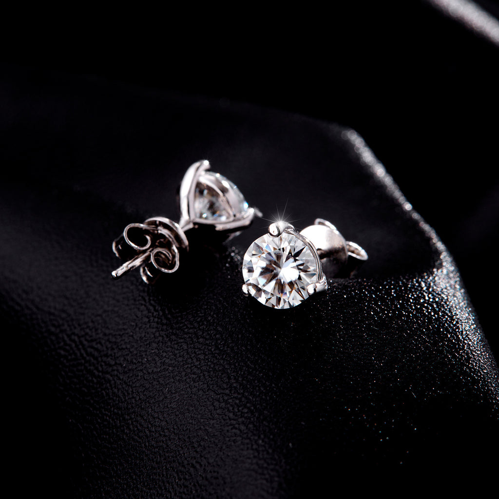Round D-Color VVS1 Moissanite Stud EarEngagement Rings in Sterling Silver – Minimalist Three-Prong Design