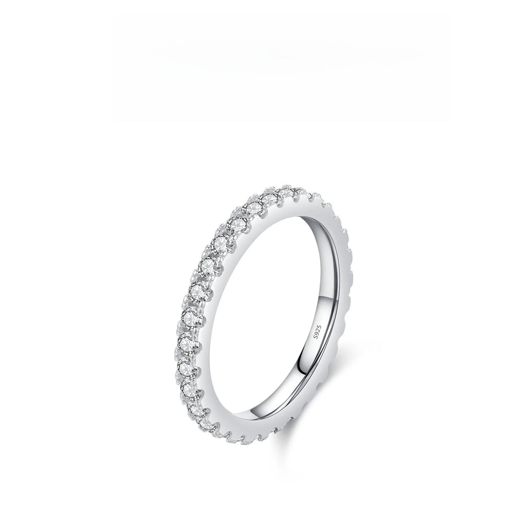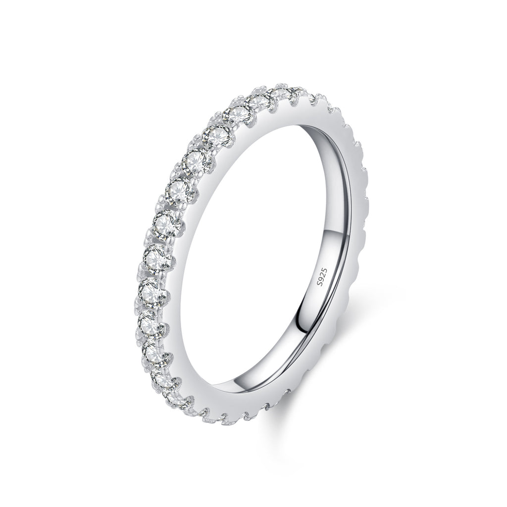 Geometric Moissanite-Pave Ring in Sterling Silver – Stackable Minimalist Band
