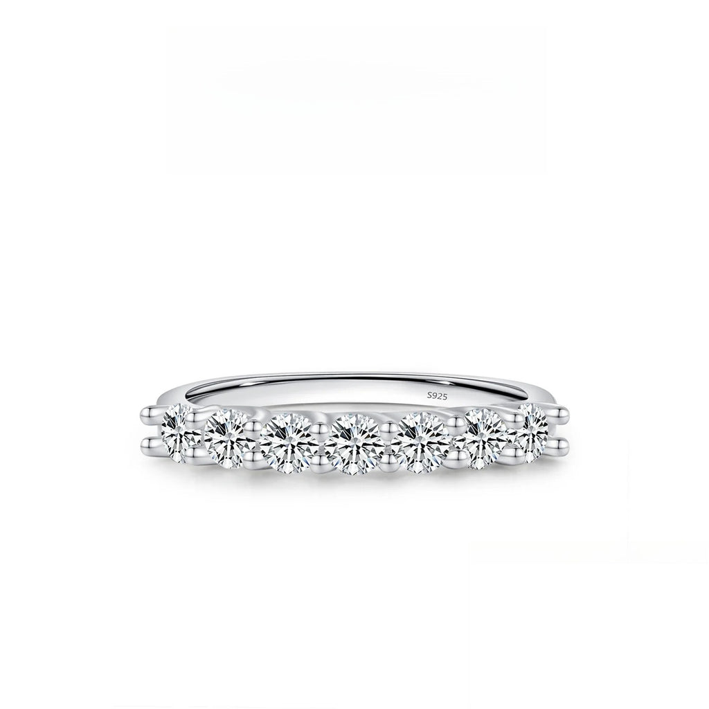 This ring is rooted in intentional simplicity: its angular geometry provides structure, while the delicate pavé setting adds just enough light-play to catch attention without overwhelming. It’s not oversized or flashy — instead, it speaks through precision, balance, and quiet sophistication. Whether worn alone on the index finger for a bold statement or layered with other thin bands for curated texture, it adapts to your personal rhythm. The sterling silver base offers a luminous, cool-toned backdrop that enhances the fire of each moissanite stone, making it equally at home with a tailored blazer or weekend denim.
