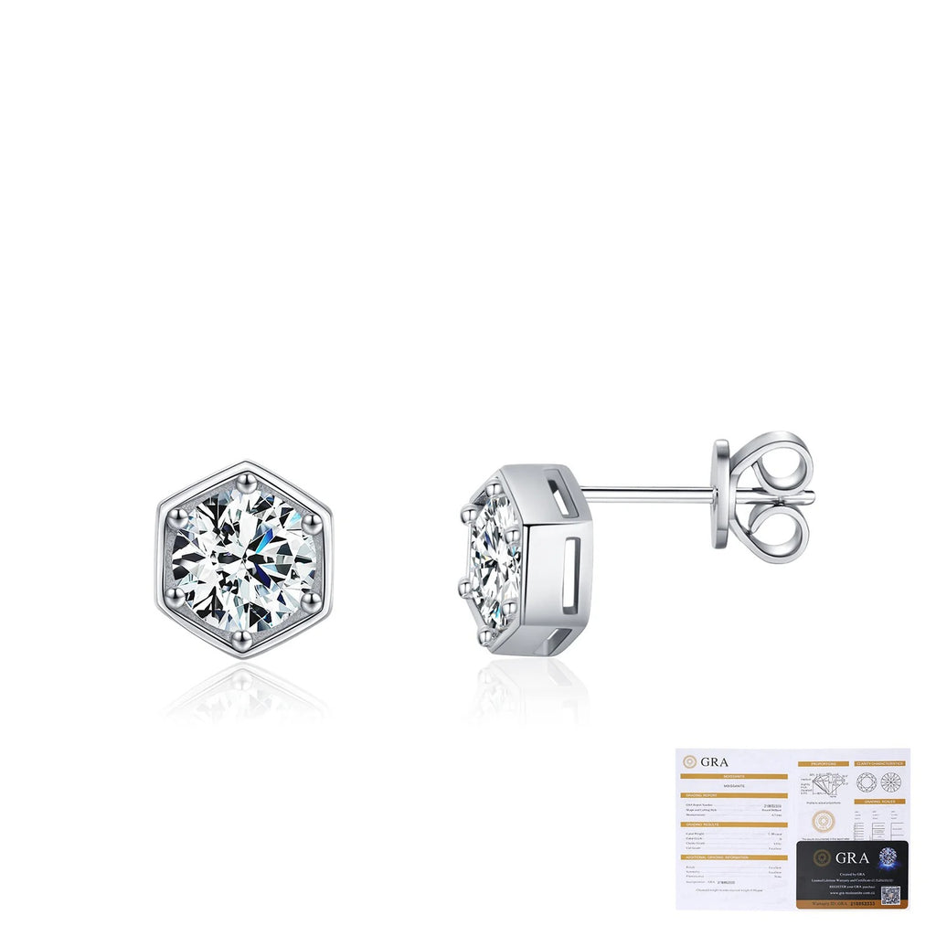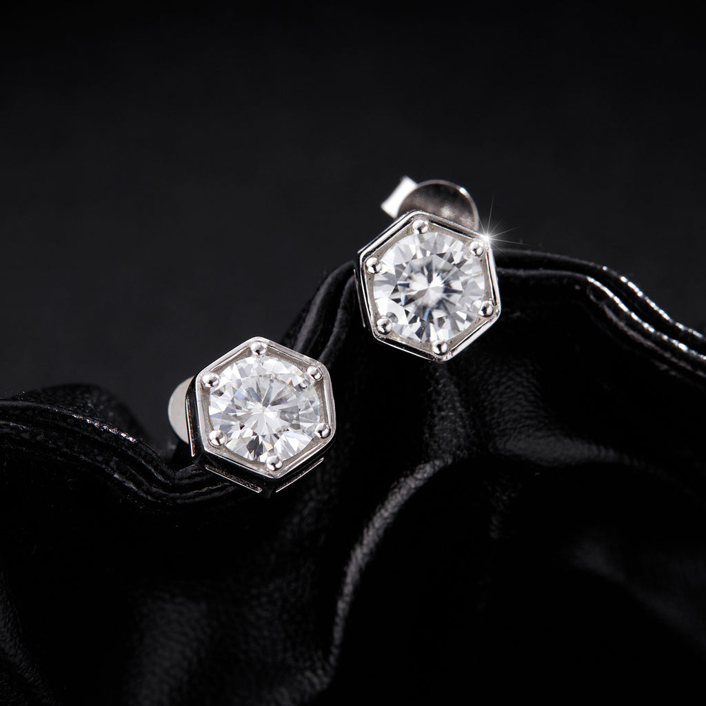 Hexagonal D-Color VVS1 Moissanite Stud EarEngagement Rings in Sterling Silver